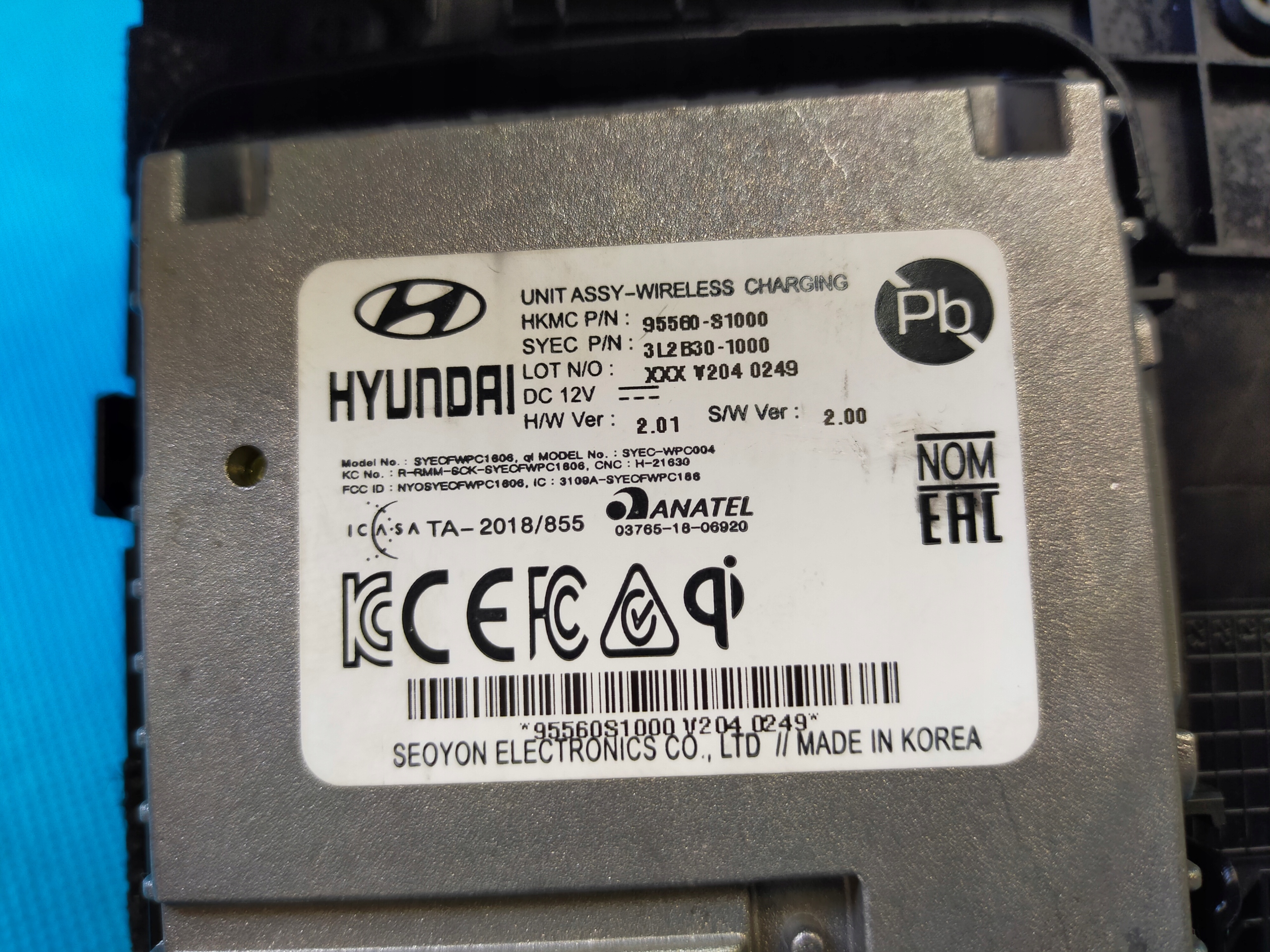 ZAPZA — уникальный маркетплейс запчастей автотоваров и услуг для физ и юр лиц. В каталоге маркетплейса ZAPZA представлены новые, б/у и восстановленные автозапчасти, для всех типов транспорта. Автодеталь Hyundai SANTA FE 4 IV 2.0 185KM 2020 r зарядка индукционная 95560-S1000 после демонтажа прошла проверку и готова к дальнейшей эксплуатации.