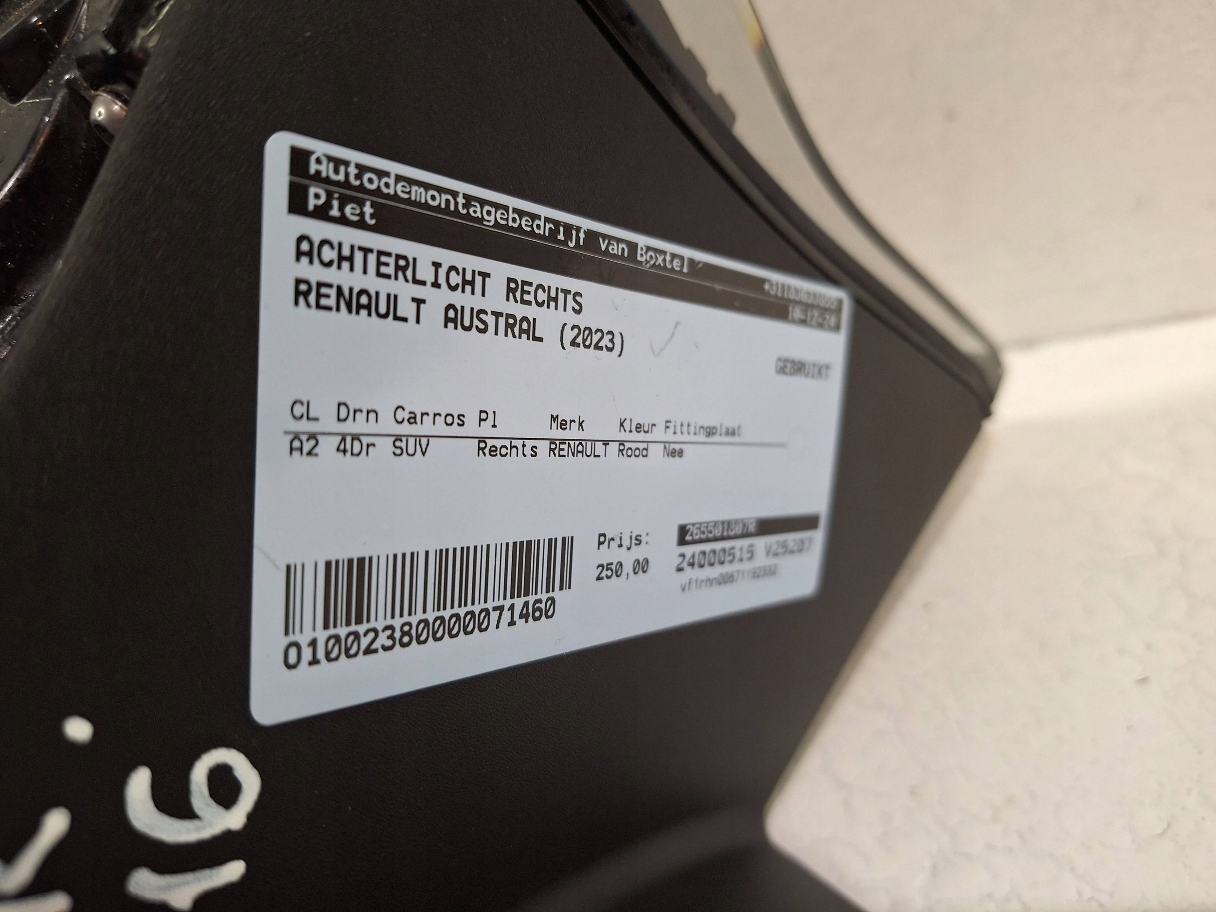 ZAPZA — уникальный маркетплейс запчастей автотоваров и услуг для физ и юр лиц. В каталоге маркетплейса ZAPZA представлены новые, б/у и восстановленные автозапчасти, для всех типов транспорта. Автодеталь фонарь правый led 265501807R renault AUSTRAL 24- после демонтажа прошла проверку и готова к дальнейшей эксплуатации.