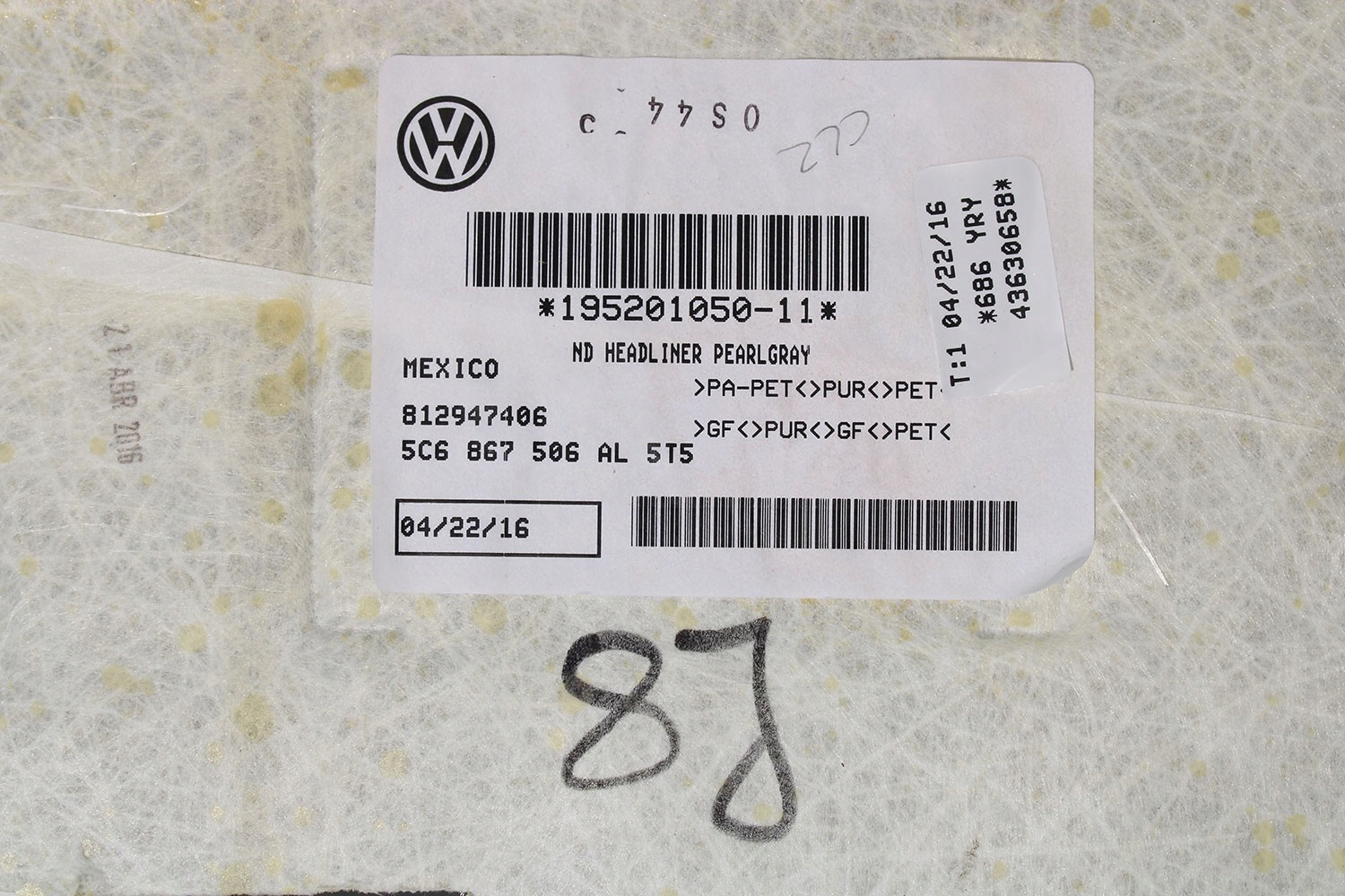 vw JETTA 5C потолок 5C6867506AL 5C6 867 506 AL обивка FL РЕСТАЙЛИНГ '