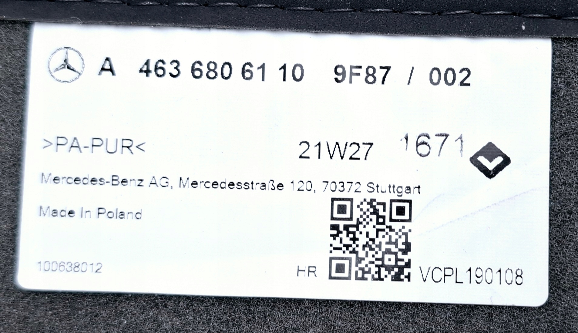 mercedes-benz W463 AMG коврик правый задний A4636806110