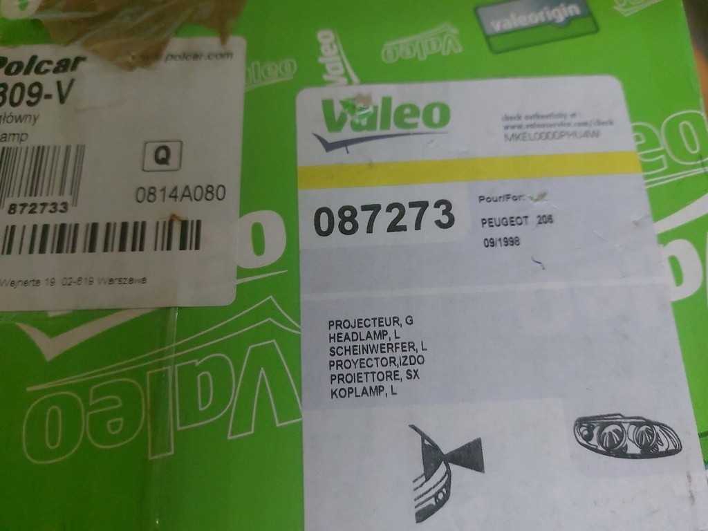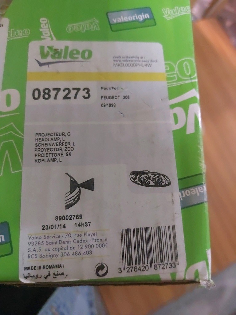фара передняя левая peugeot 206 98-03 valeo H4