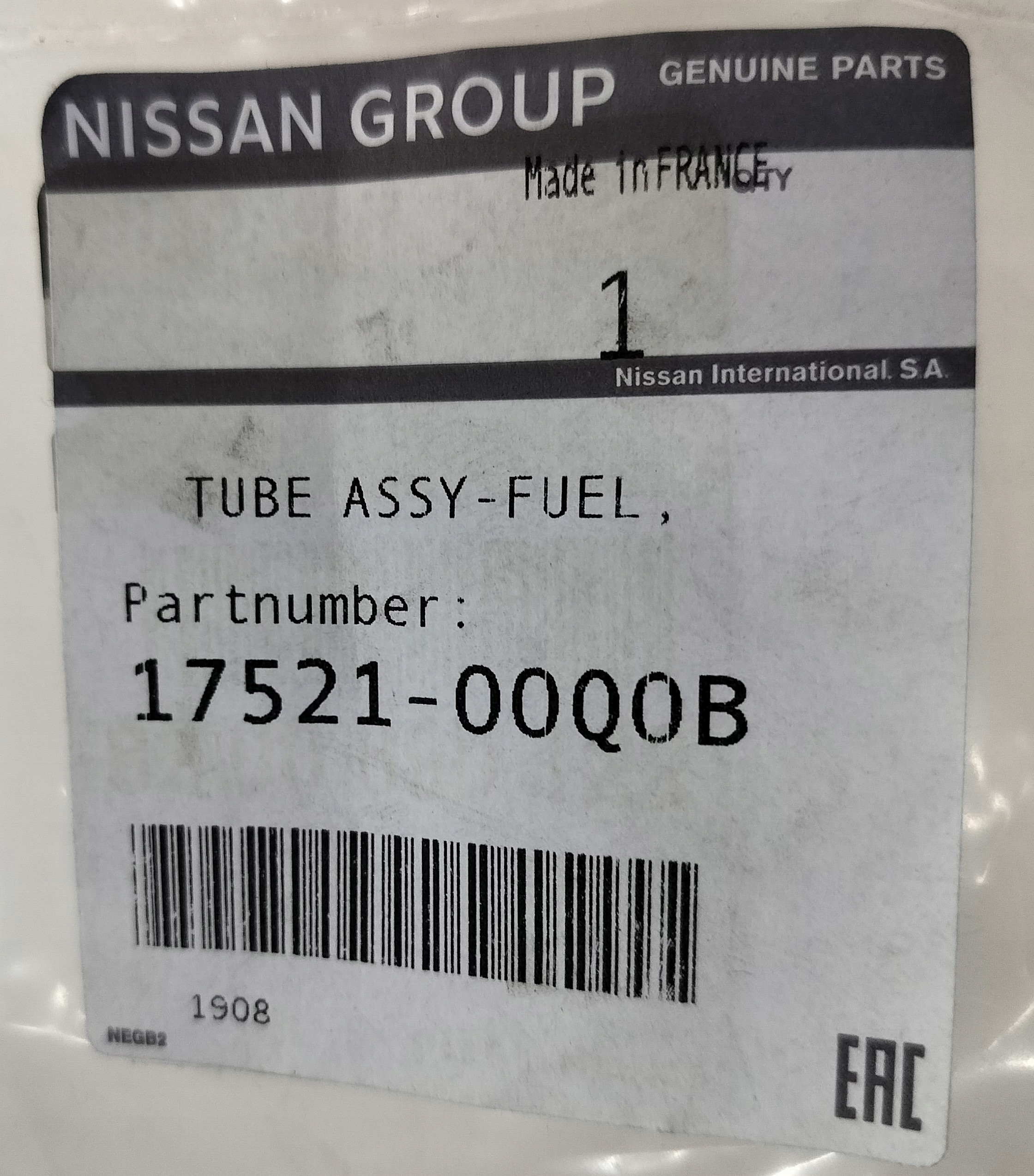 17521-00Q0B патрубок трубка топлива nissan NV400 renault MASTER III