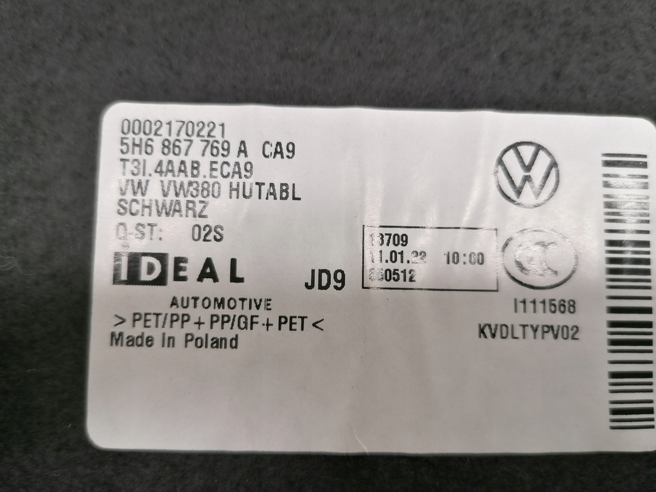 vw GOLF VIII 8 полка задняя багажника оригинал 2019-