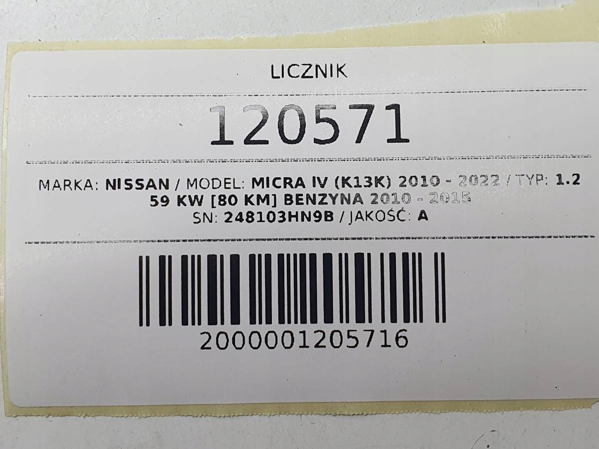 спидометр часы nissan MICRA K13 1.2b РЕСТАЙЛИНГ европа 248103HN9B