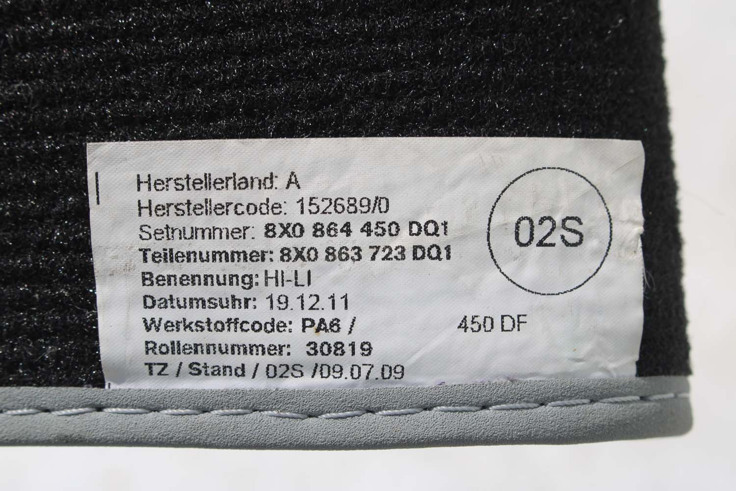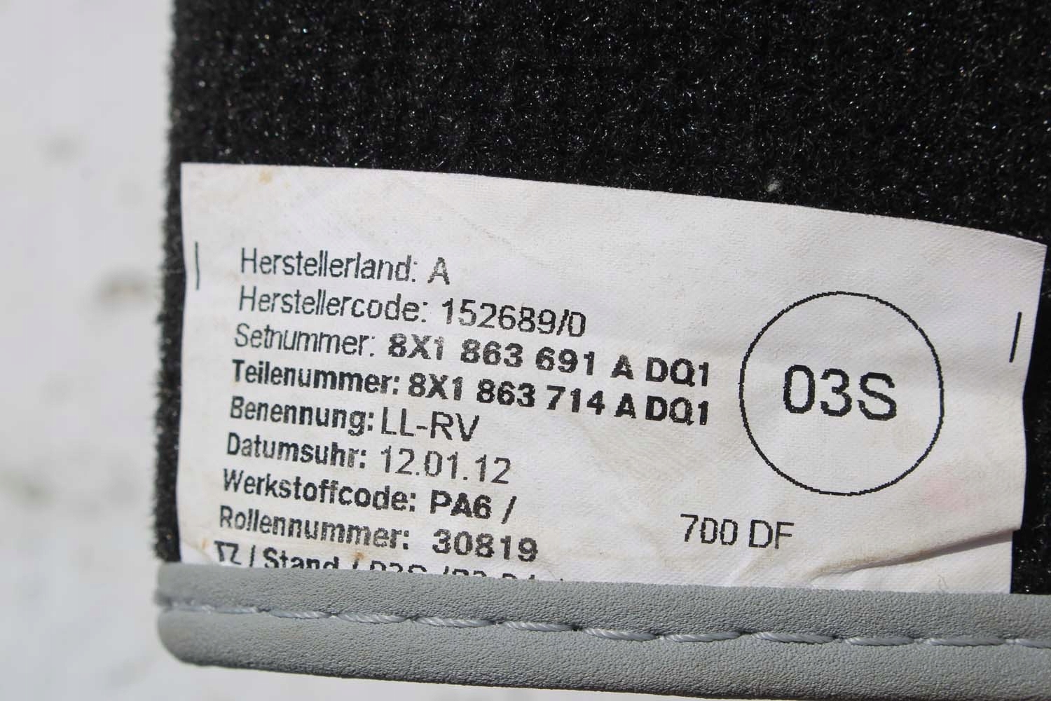 Audi A1 Коврики пола дворники 8X1863691A 8X1 863 691 a DQ1 8X1863691