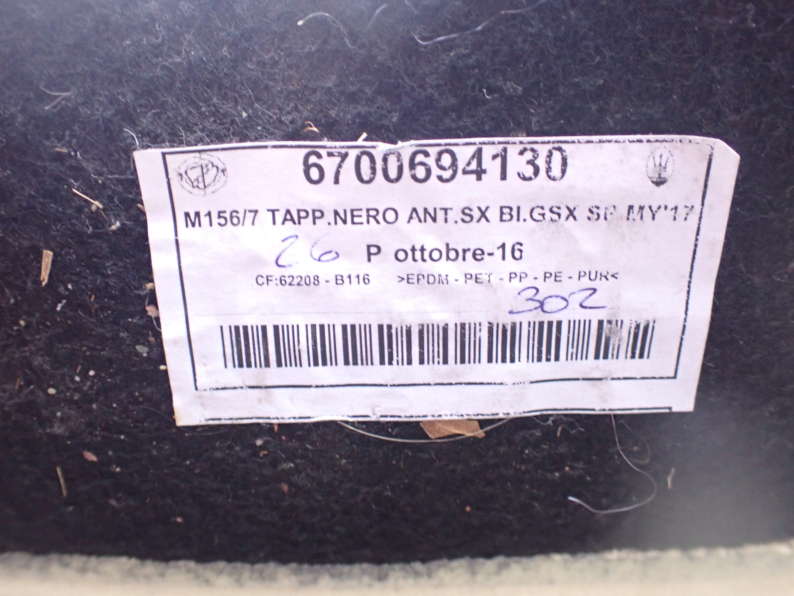 ZAPZA — уникальный маркетплейс запчастей автотоваров и услуг для физ и юр лиц. В каталоге маркетплейса ZAPZA представлены новые, б/у и восстановленные автозапчасти, для всех типов транспорта. Автодеталь ковер комплект. MASERATI QUATTROPORTE 2015 после демонтажа прошла проверку и готова к дальнейшей эксплуатации.