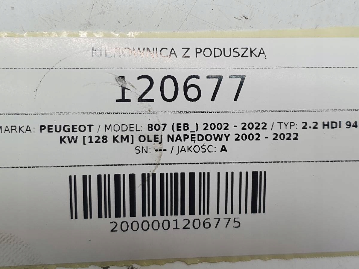 ZAPZA — уникальный маркетплейс запчастей автотоваров и услуг для физ и юр лиц. В каталоге маркетплейса ZAPZA представлены новые, б/у и восстановленные автозапчасти, для всех типов транспорта. Автодеталь руль подушки безопасности подушка воздушная peugeot 807 14001062YR после демонтажа прошла проверку и готова к дальнейшей эксплуатации.