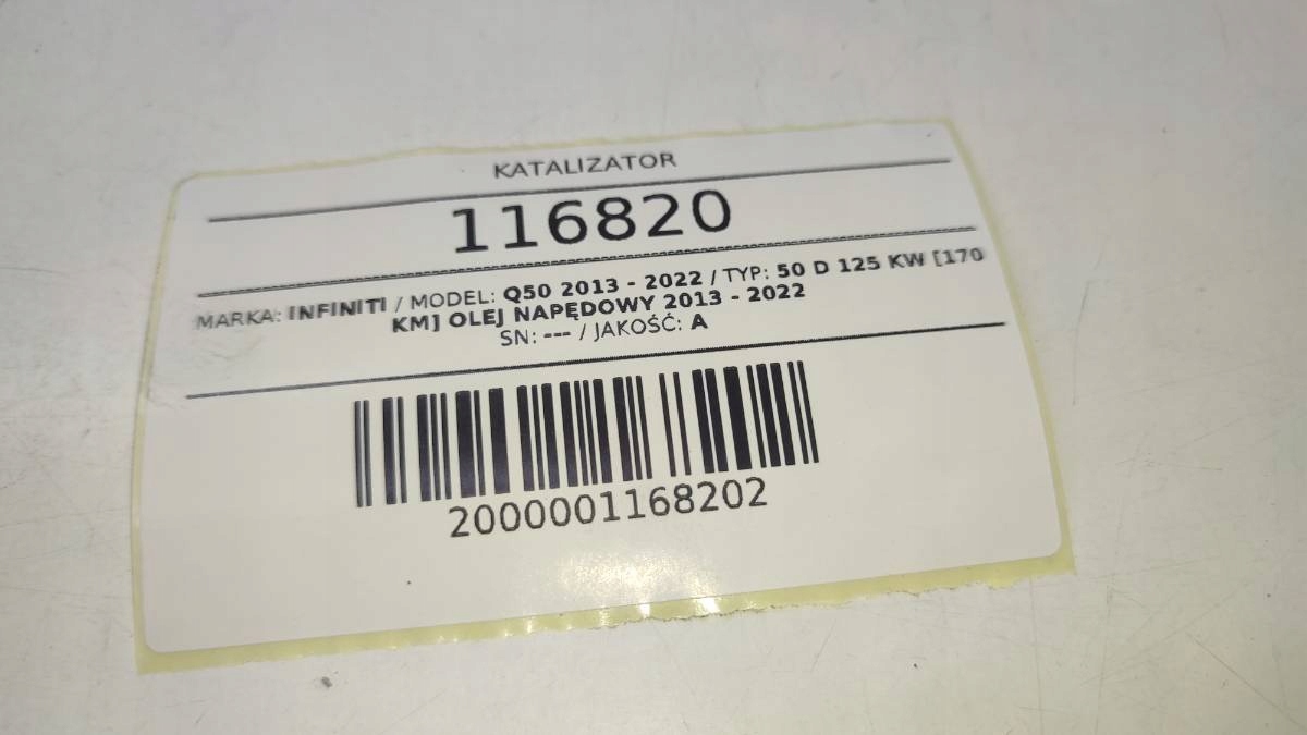 ZAPZA — уникальный маркетплейс запчастей автотоваров и услуг для физ и юр лиц. В каталоге маркетплейса ZAPZA представлены новые, б/у и восстановленные автозапчасти, для всех типов транспорта. Автодеталь катализатор выхлоп INFINITI Q50 2.2 d Дизель после демонтажа прошла проверку и готова к дальнейшей эксплуатации.