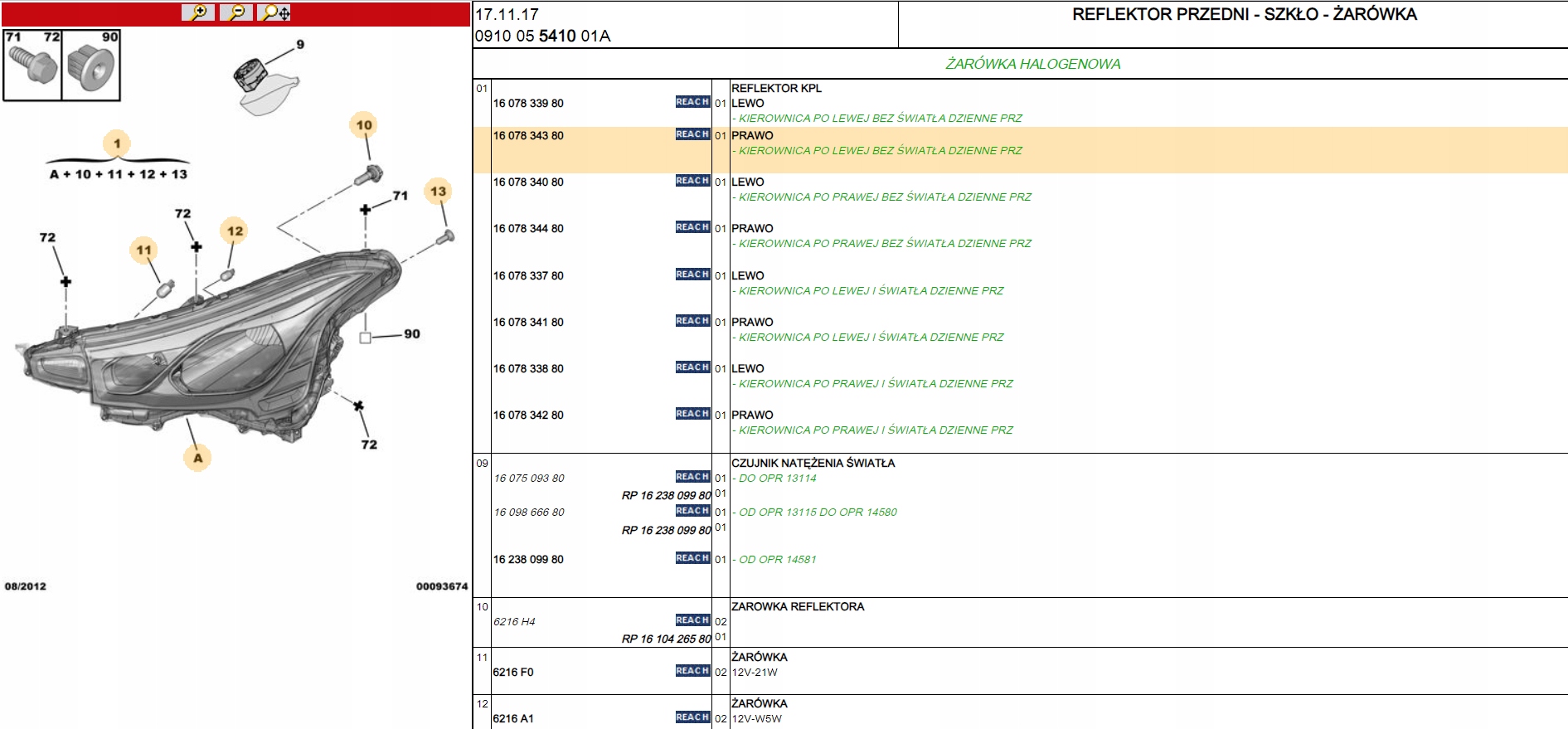 фара правая CITROEN C4 AIRCROSS 1607834380
