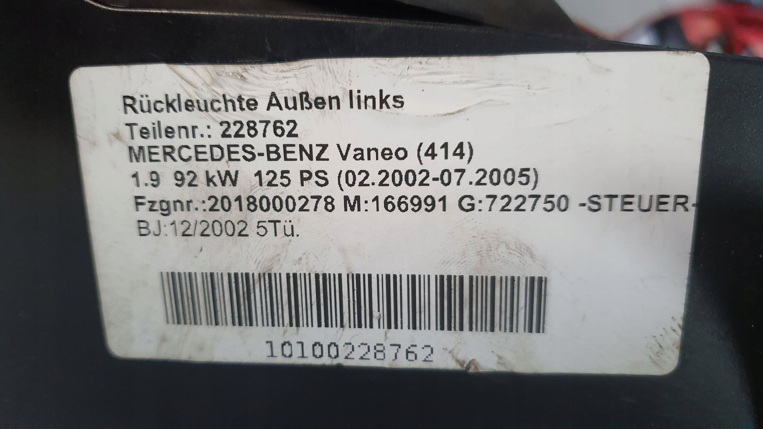 ZAPZA — уникальный маркетплейс запчастей автотоваров и услуг для физ и юр лиц. В каталоге маркетплейса ZAPZA представлены новые, б/у и восстановленные автозапчасти, для всех типов транспорта. Автодеталь фонарь левый MERCEDES VANEO A4148200064 01- после демонтажа прошла проверку и готова к дальнейшей эксплуатации.