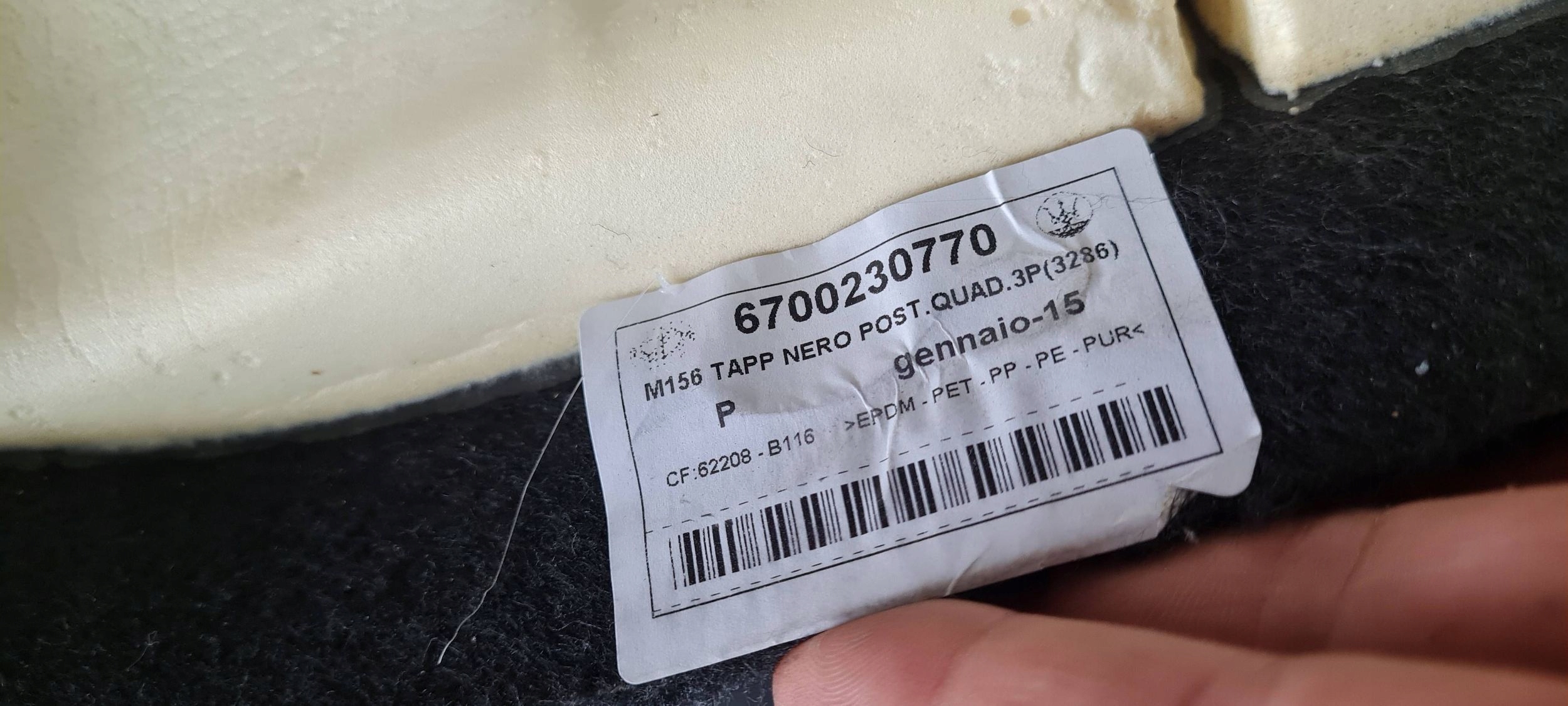 ZAPZA — уникальный маркетплейс запчастей автотоваров и услуг для физ и юр лиц. В каталоге маркетплейса ZAPZA представлены новые, б/у и восстановленные автозапчасти, для всех типов транспорта. Автодеталь MASERATI QUATTROPORTE VI ковер внутренний после демонтажа прошла проверку и готова к дальнейшей эксплуатации.