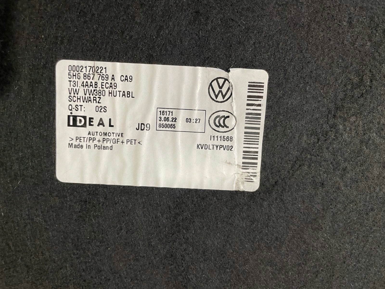 vw GOLF VIII полка багажника 5H6876769A