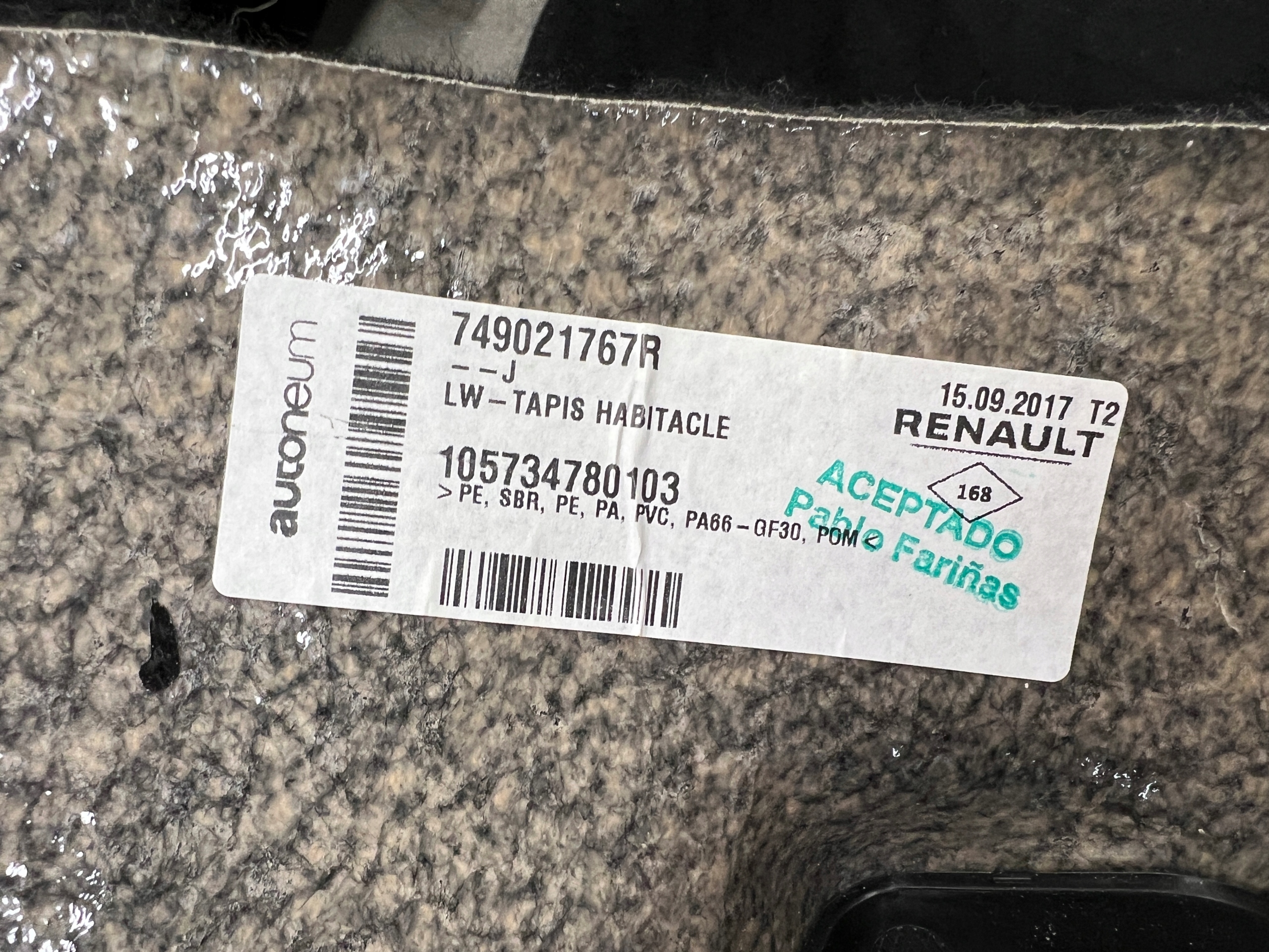 ZAPZA — уникальный маркетплейс запчастей автотоваров и услуг для физ и юр лиц. В каталоге маркетплейса ZAPZA представлены новые, б/у и восстановленные автозапчасти, для всех типов транспорта. Автодеталь renault KADJAR ковер внутренний 749021767R после демонтажа прошла проверку и готова к дальнейшей эксплуатации.