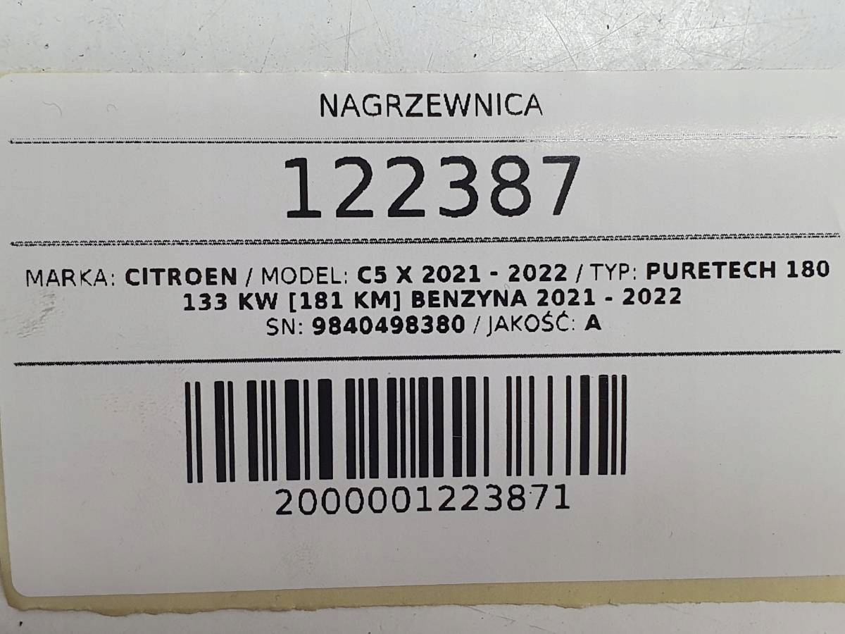 радиатор отопителя отопитель салона CITROEN C5 X европа 9840498380