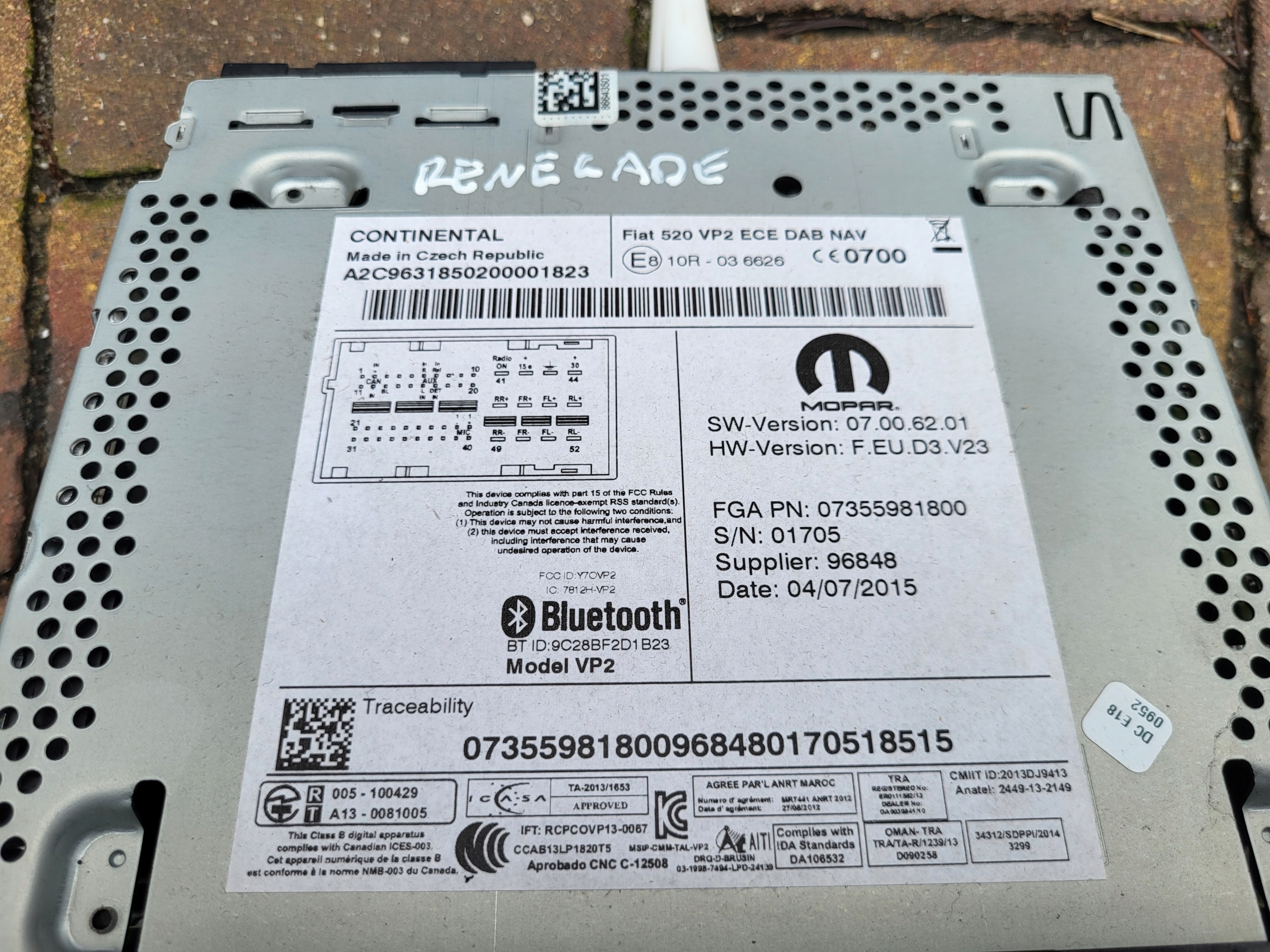 ZAPZA — уникальный маркетплейс запчастей автотоваров и услуг для физ и юр лиц. В каталоге маркетплейса ZAPZA представлены новые, б/у и восстановленные автозапчасти, для всех типов транспорта. Автодеталь радио RENEGADE 07355981800 после демонтажа прошла проверку и готова к дальнейшей эксплуатации.