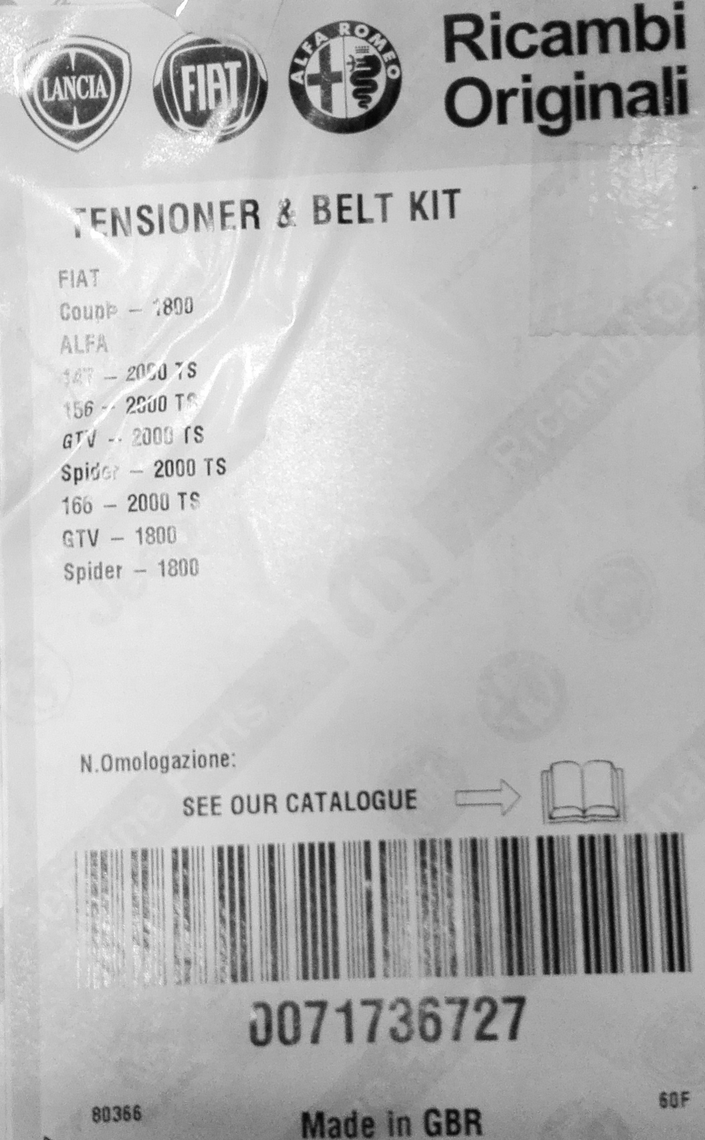 Комплект ГРМ ALFA ROMEO 147 156 1,8TS 2,0TS 166 SPIDER fiat Купе 71736727
