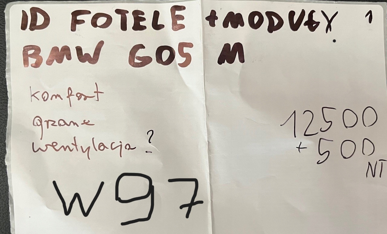 ZAPZA — уникальный маркетплейс запчастей автотоваров и услуг для физ и юр лиц. В каталоге маркетплейса ZAPZA представлены новые, б/у и восстановленные автозапчасти, для всех типов транспорта. Автодеталь кресла + блок насос подачи мочевины BMW G05 m 1 после демонтажа прошла проверку и готова к дальнейшей эксплуатации.