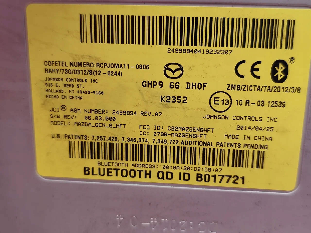 mazda 6 блок комфорта bluetooth 2.0 Бензин 107kW (146 HP) GHP966DH0F