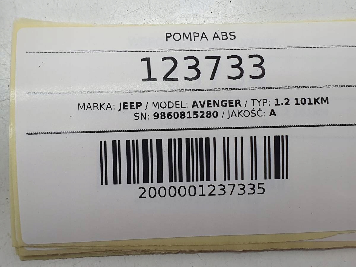 ZAPZA — уникальный маркетплейс запчастей автотоваров и услуг для физ и юр лиц. В каталоге маркетплейса ZAPZA представлены новые, б/у и восстановленные автозапчасти, для всех типов транспорта. Автодеталь блок abs 9860815280 AVENGER peugeot 208 II после демонтажа прошла проверку и готова к дальнейшей эксплуатации.