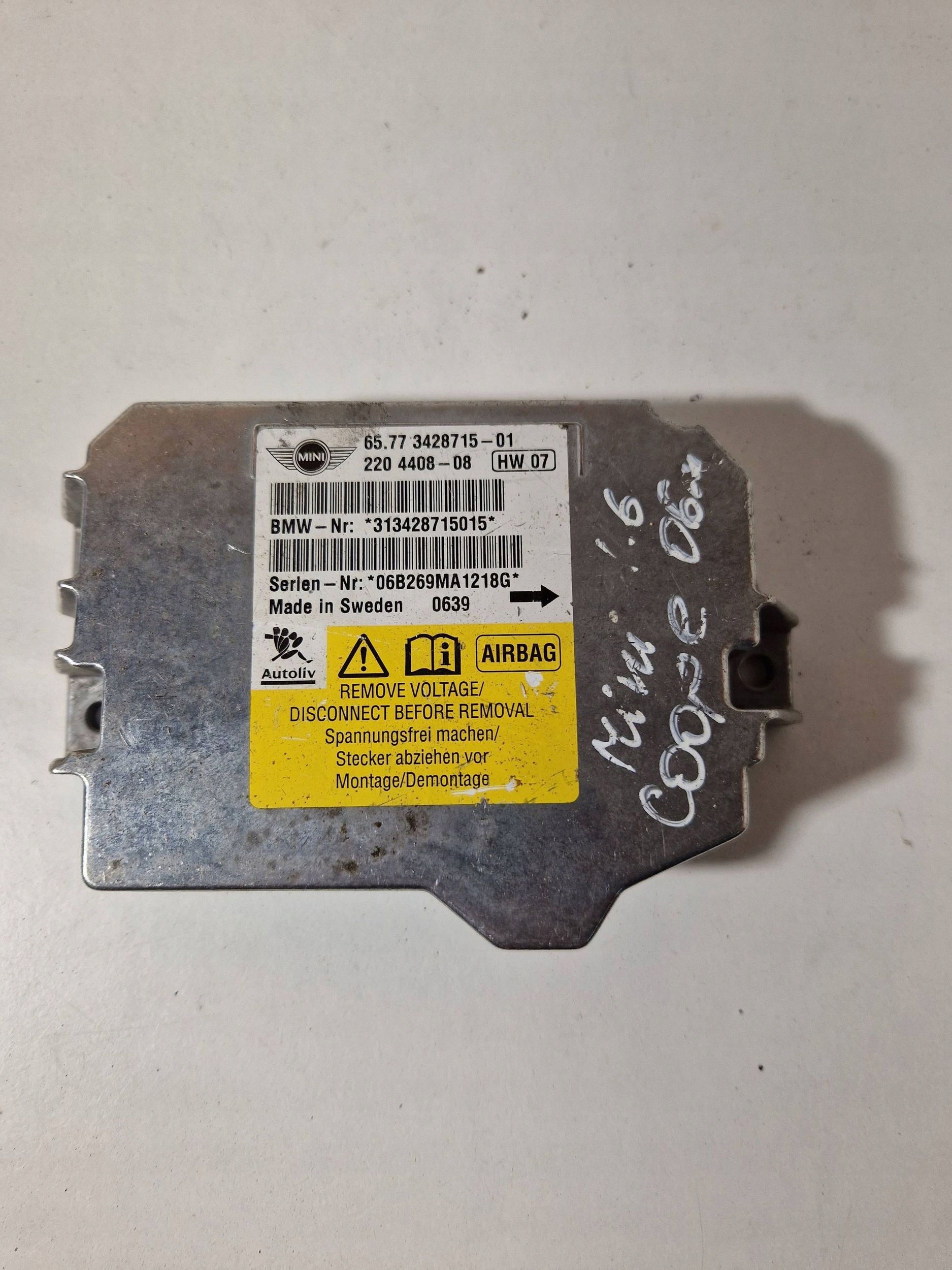 ZAPZA — уникальный маркетплейс запчастей автотоваров и услуг для физ и юр лиц. В каталоге маркетплейса ZAPZA представлены новые, б/у и восстановленные автозапчасти, для всех типов транспорта. Автодеталь модуль подушек подушки безопасности MINI oe 3428715 после демонтажа прошла проверку и готова к дальнейшей эксплуатации.