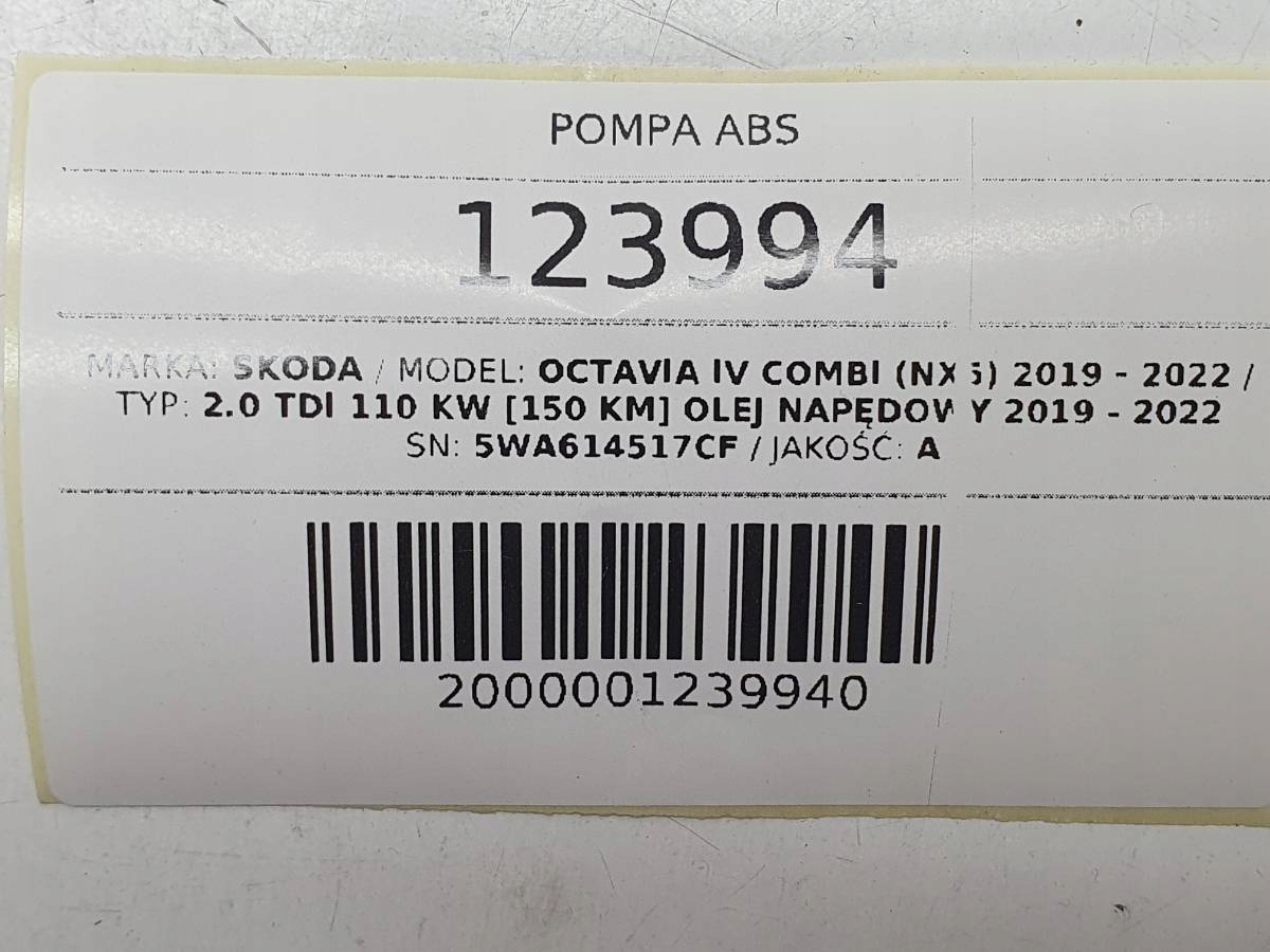 блок abs 5WA614517CF SKODA OCTAVIA IV 2023 2.0 tdi 150km европа