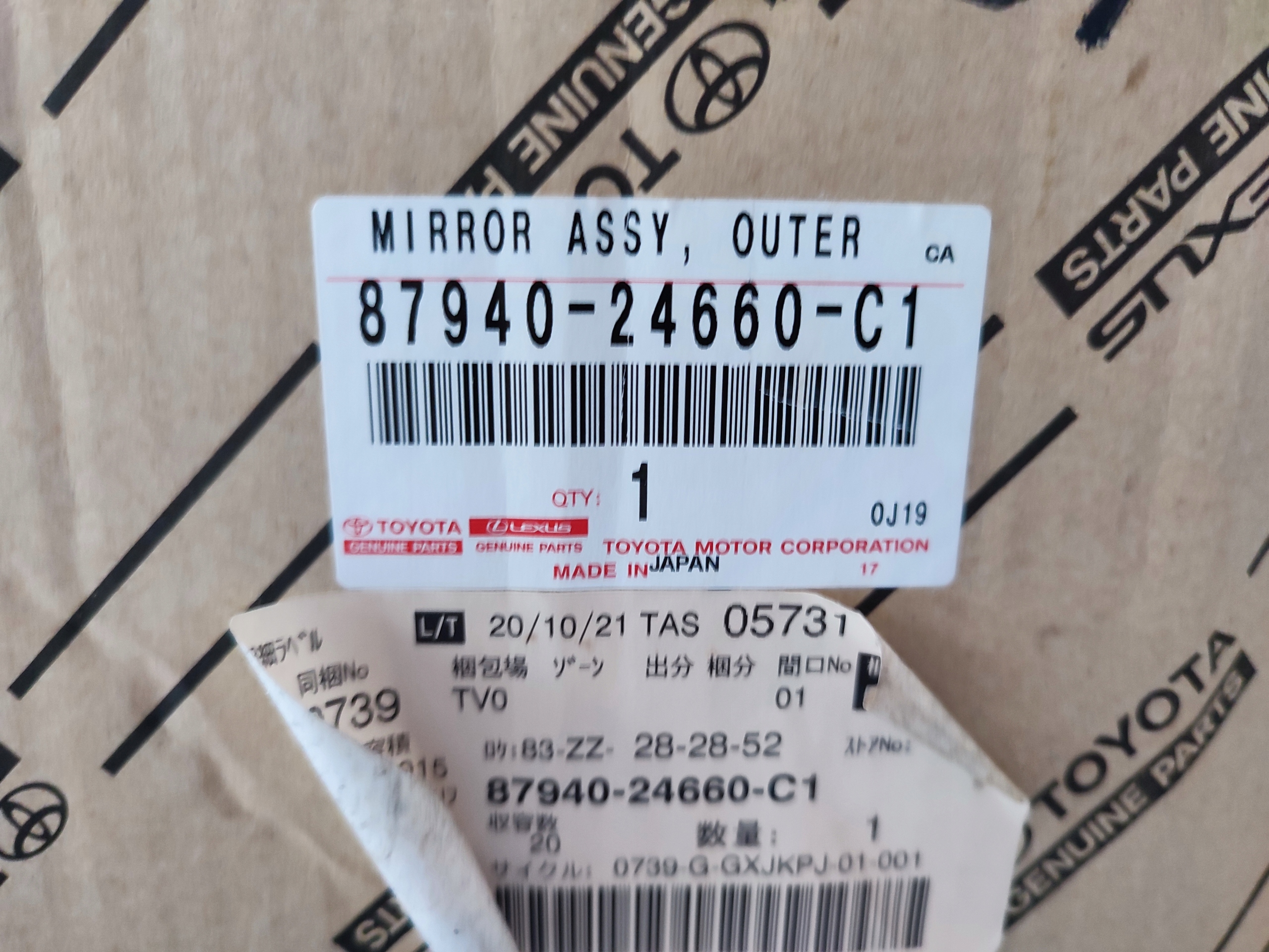 lexus RC F 300H зеркало правое 2020- 15PIN 87940-24660-