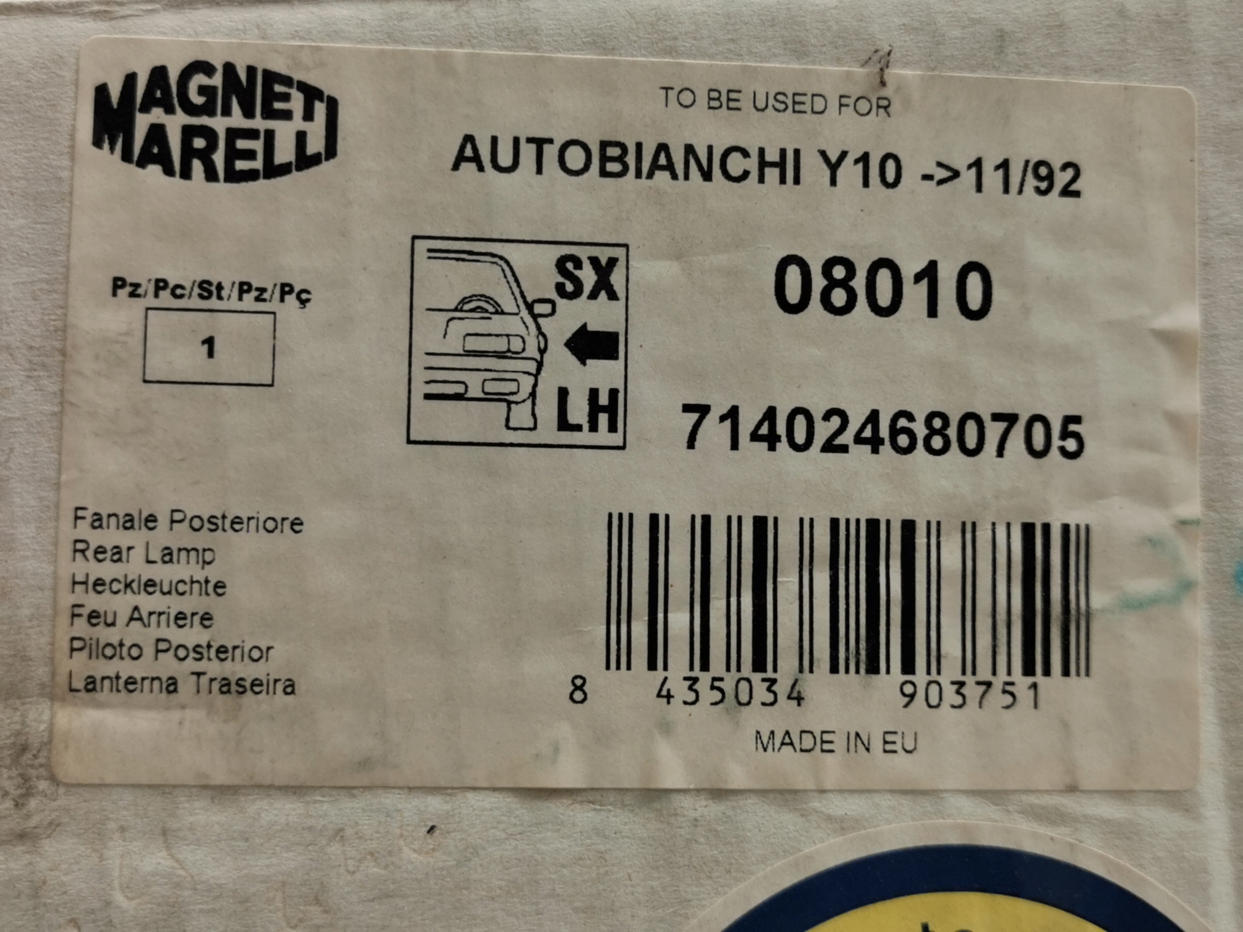 фонарь левый lancia Y10 1985-1996 magneti marelli 7690053 / 714024680705