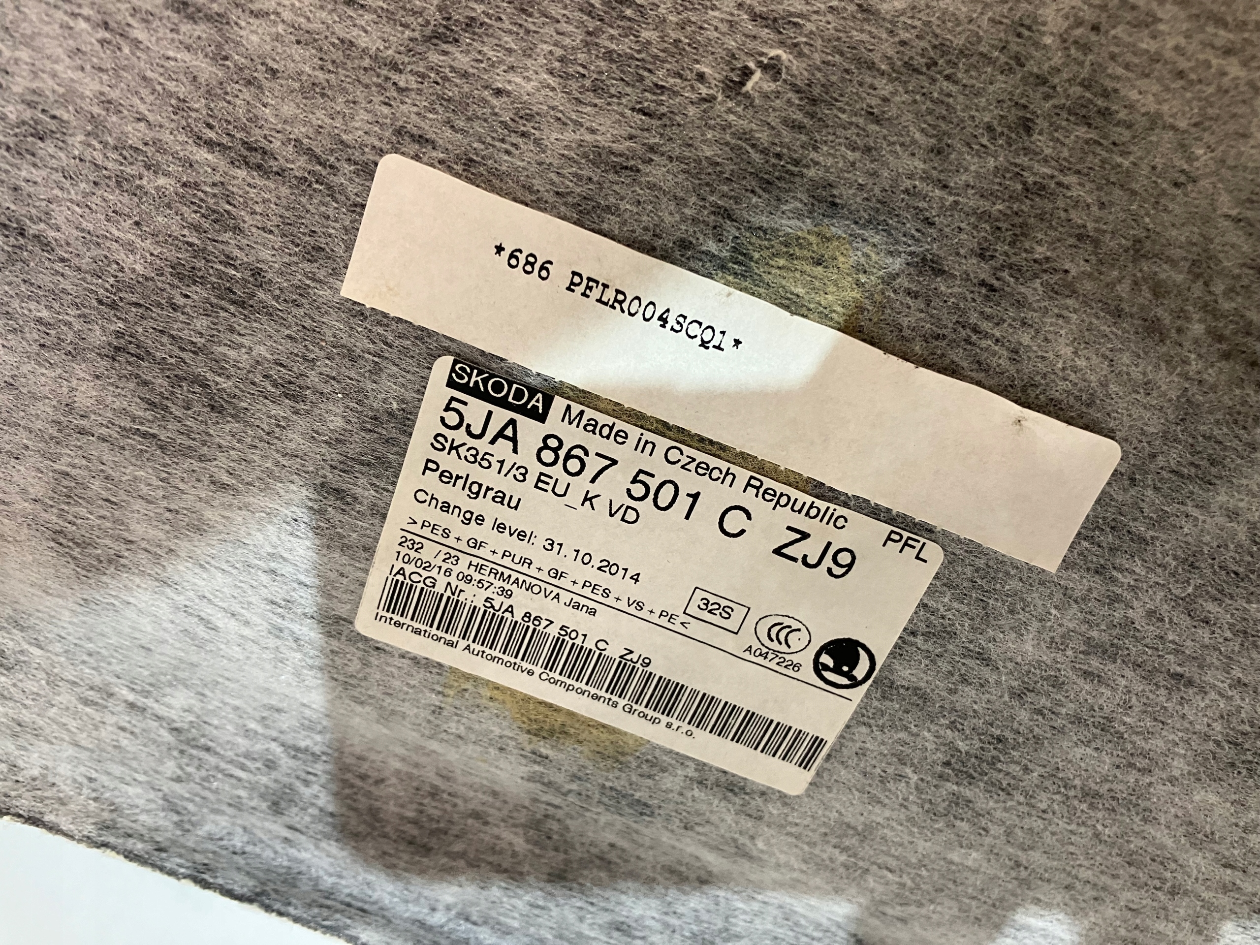 потолок SKODA RAPID седан Лифтбэк 5JA867501C
