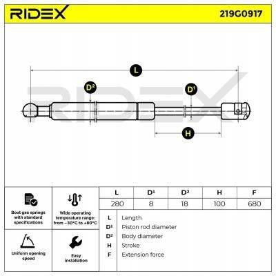 пружина газовая, крышка багажника ridex 219G0917