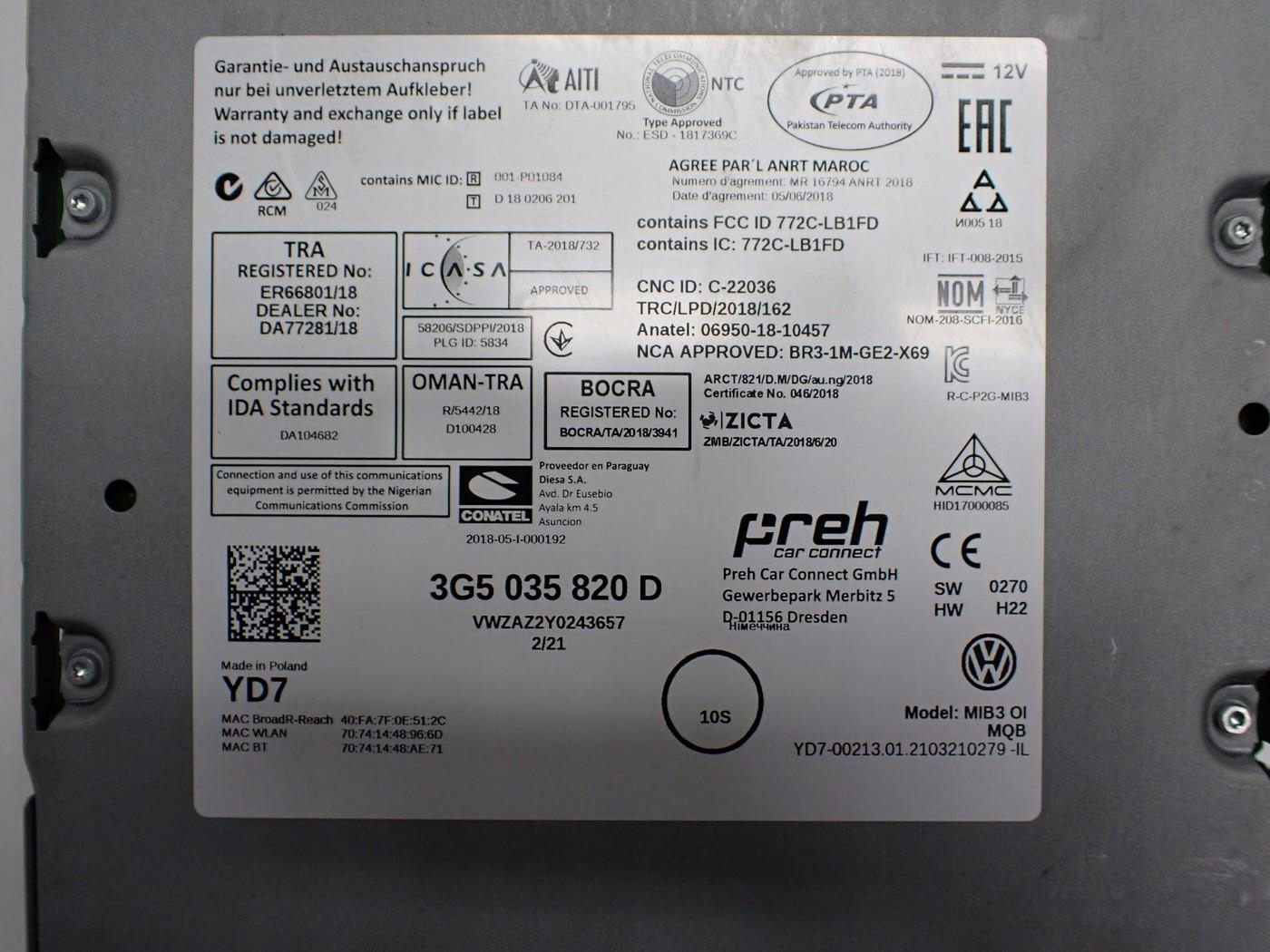 радио NAVI европа 5G6919605B 3G5035820D vw 21R