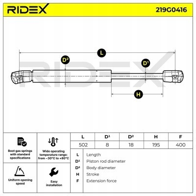 пружина газовая, крышка багажника ridex 219G0416