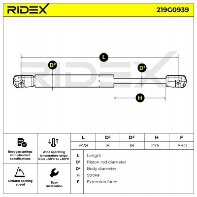 пружина газовая, крышка багажника ridex 219G0939