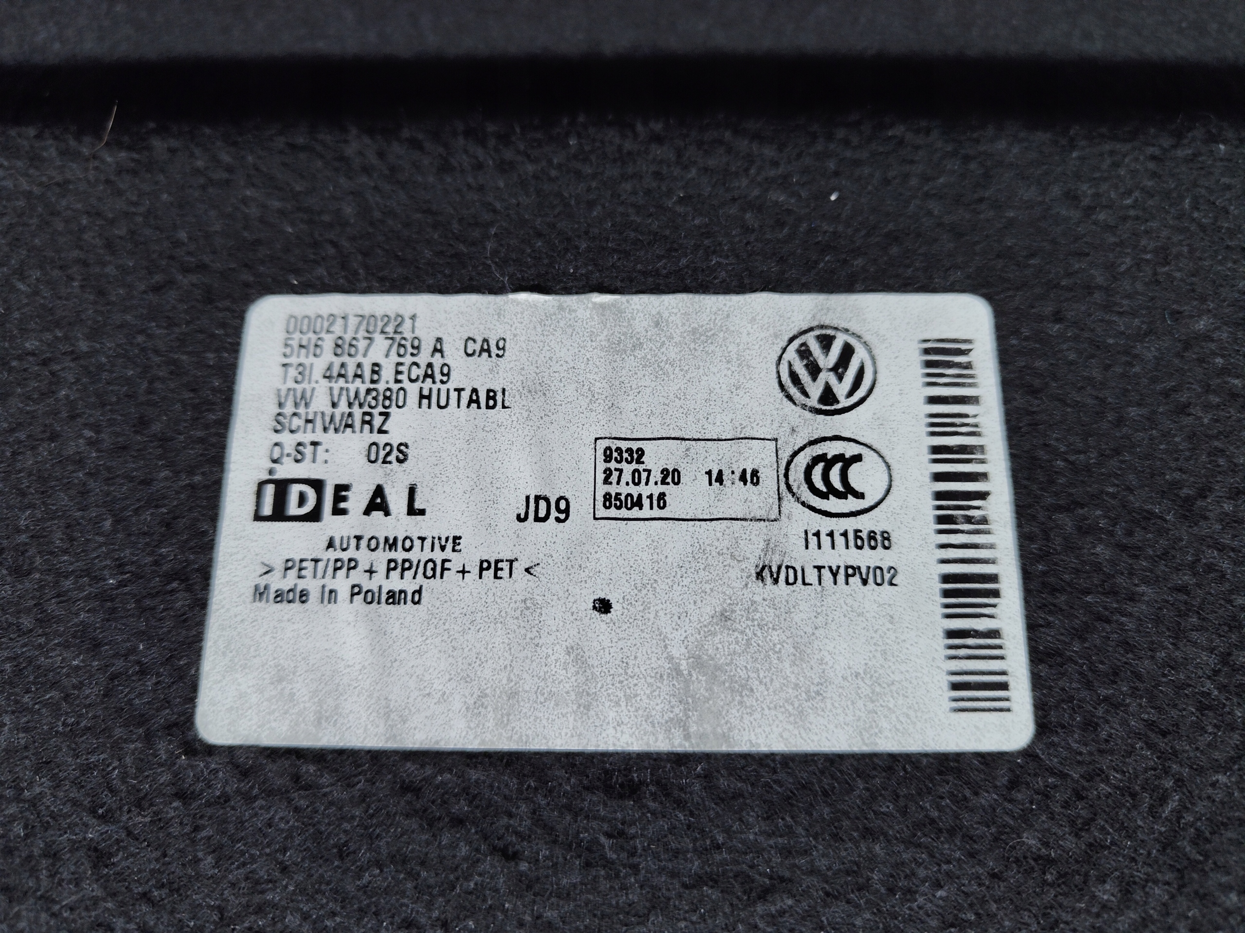 vw GOLF VIII 8 полка задняя багажника оригинал 2019-