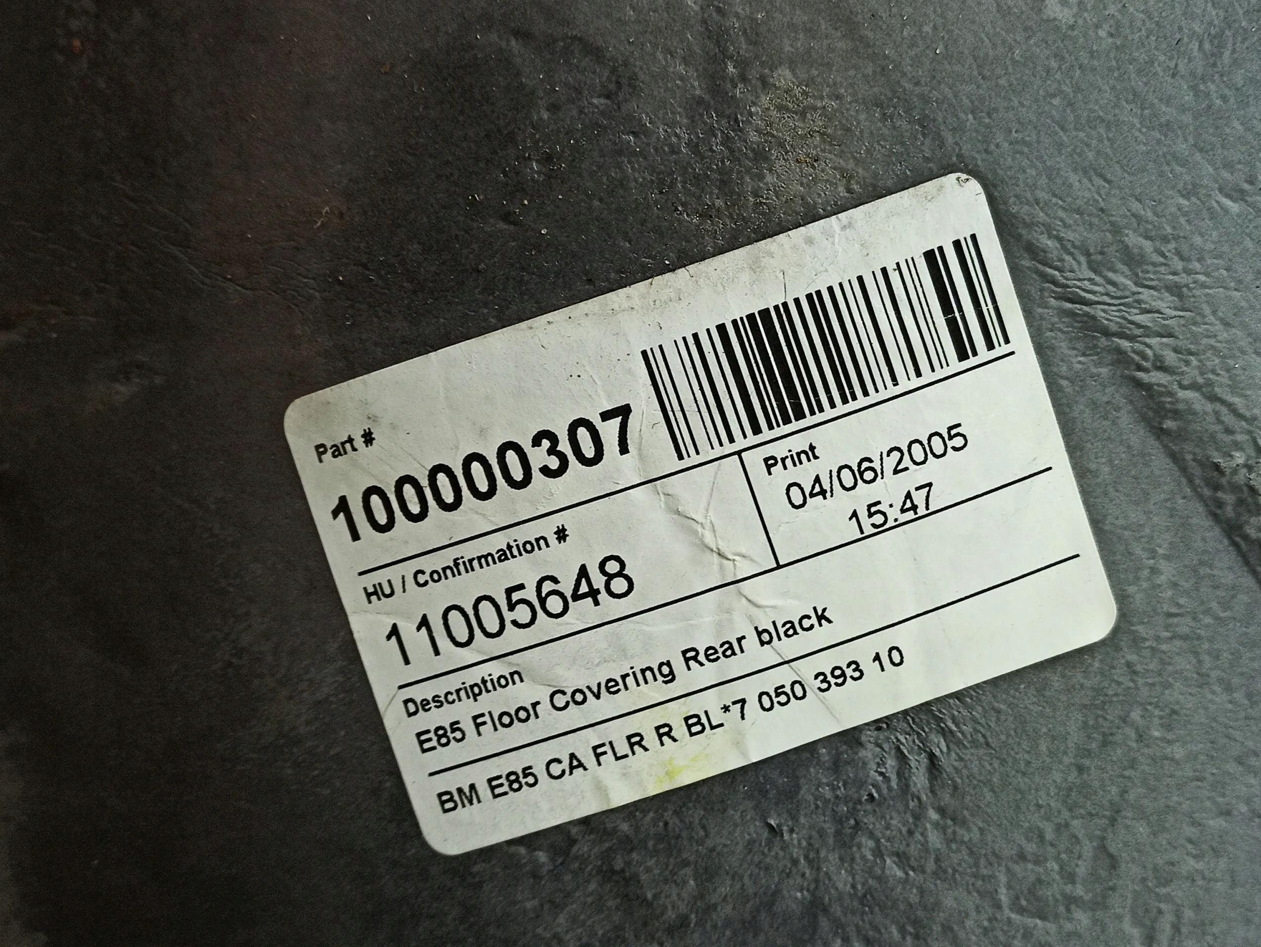 ковер внутренний BMW Z4 ROADSTER (E85) 51477049954 3.0л бензин 170kW 2003