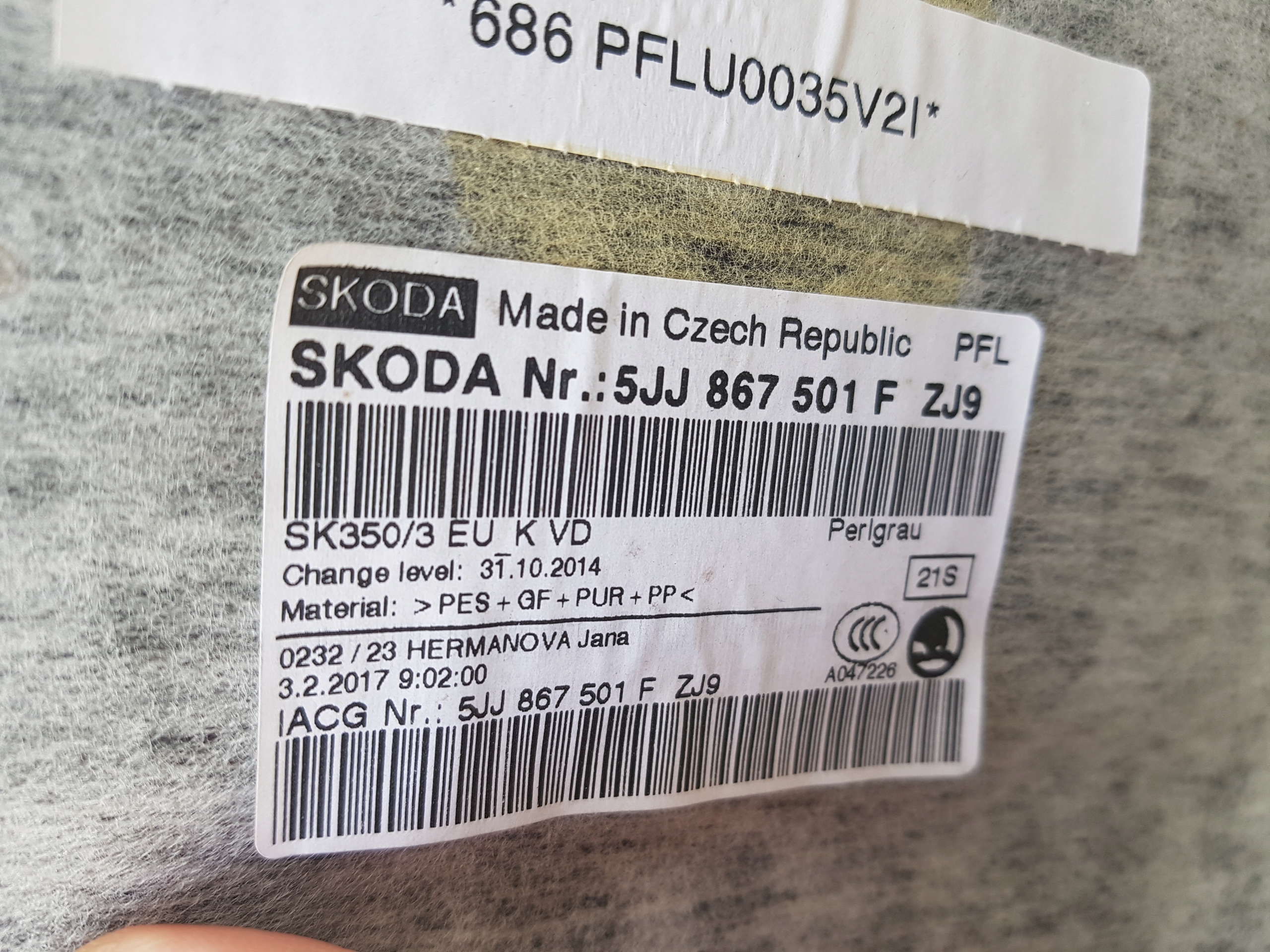 SKODA RAPID II HB потолок 5JJ867501F