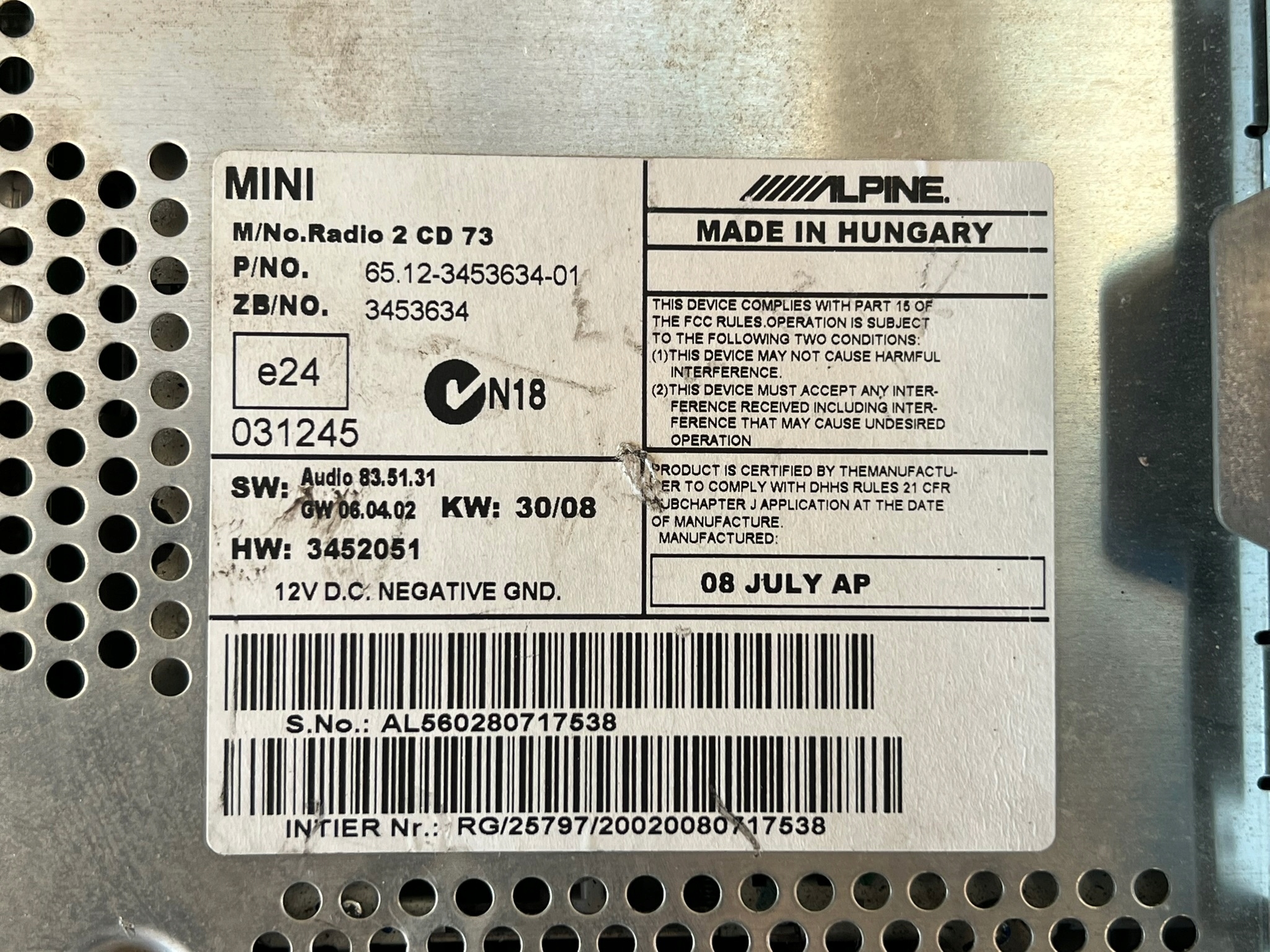 ZAPZA — уникальный маркетплейс запчастей автотоваров и услуг для физ и юр лиц. В каталоге маркетплейса ZAPZA представлены новые, б/у и восстановленные автозапчасти, для всех типов транспорта. Автодеталь CD MINI COOPER (R56) 3453634 после демонтажа прошла проверку и готова к дальнейшей эксплуатации.