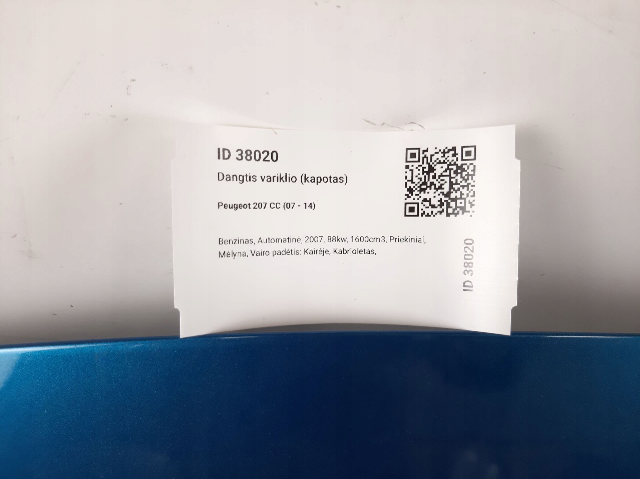 ZAPZA — уникальный маркетплейс запчастей автотоваров и услуг для физ и юр лиц. В каталоге маркетплейса ZAPZA представлены новые, б/у и восстановленные автозапчасти, для всех типов транспорта. Автодеталь 2007 peugeot 207 CC Капот после демонтажа прошла проверку и готова к дальнейшей эксплуатации.