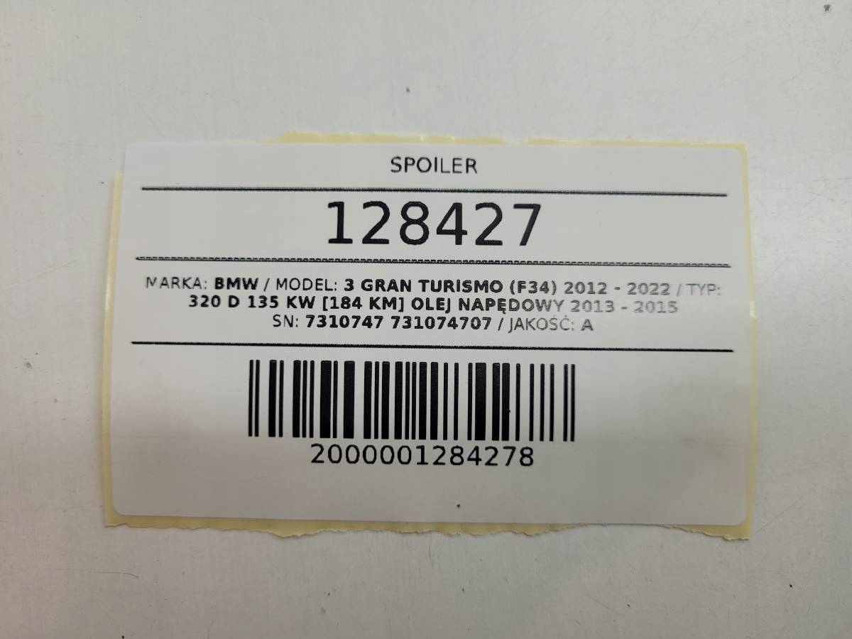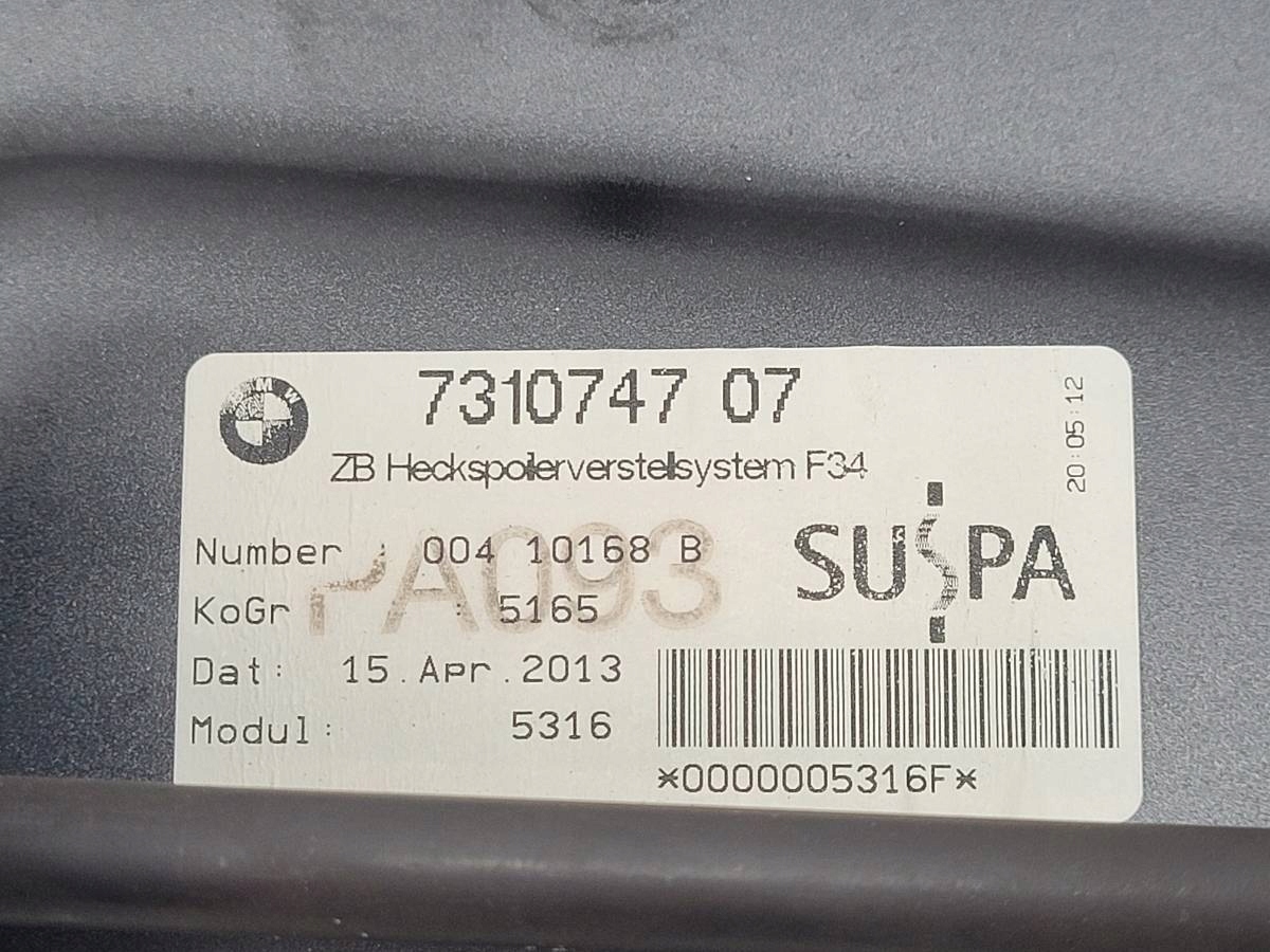 ZAPZA — уникальный маркетплейс запчастей автотоваров и услуг для физ и юр лиц. В каталоге маркетплейса ZAPZA представлены новые, б/у и восстановленные автозапчасти, для всех типов транспорта. Автодеталь спойлер активный спойл крышки багажника BMW 3 F34 GT 7310747 после демонтажа прошла проверку и готова к дальнейшей эксплуатации.