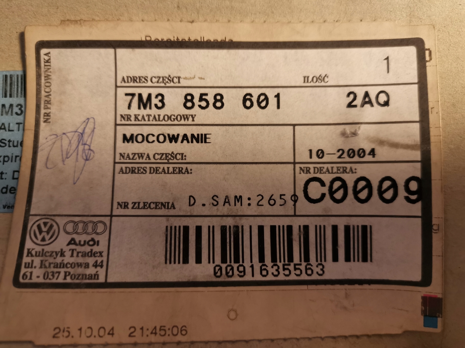 vw SHARAN Alhambra I РЕСТАЙЛИНГ Держатель на левый 7M3858601