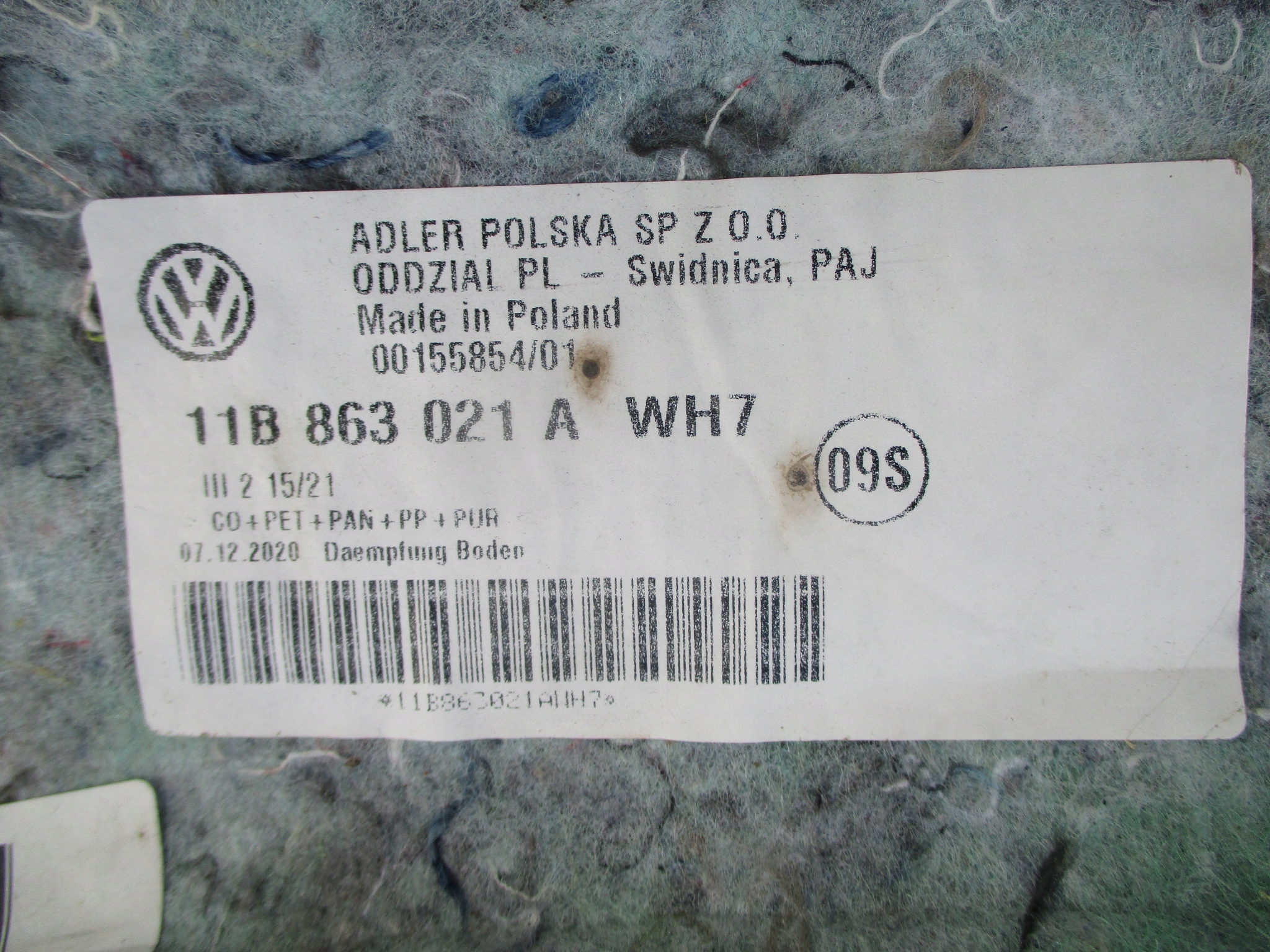 vw ID4 id.4 ковер внутренний 11B863021A