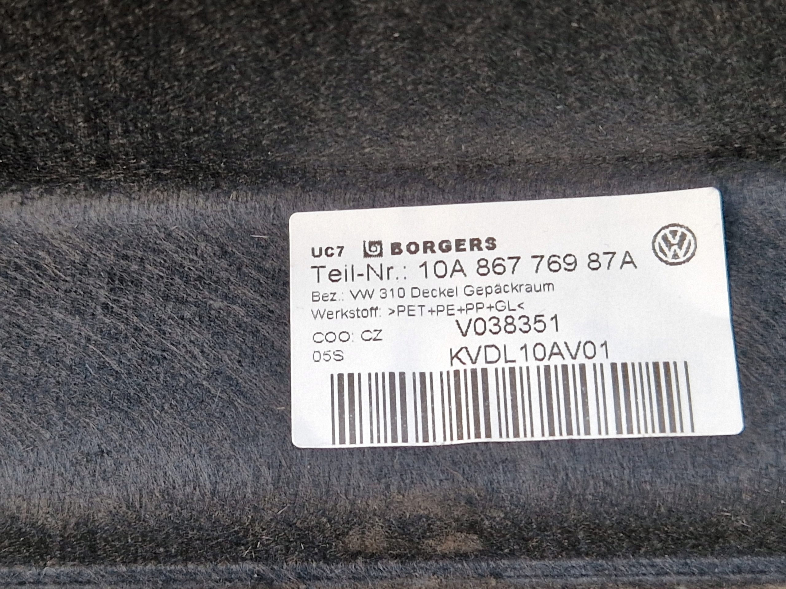vw id.3 ID3 полка багажника 10A86776987A <2019