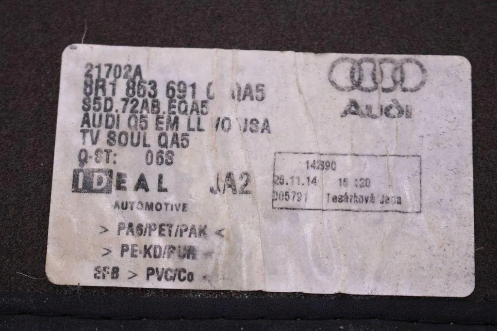 ZAPZA — уникальный маркетплейс запчастей автотоваров и услуг для физ и юр лиц. В каталоге маркетплейса ZAPZA представлены новые, б/у и восстановленные автозапчасти, для всех типов транспорта. Автодеталь SQ5 8R Q5 коврик Коврики перед левая правая зад 4X после демонтажа прошла проверку и готова к дальнейшей эксплуатации.