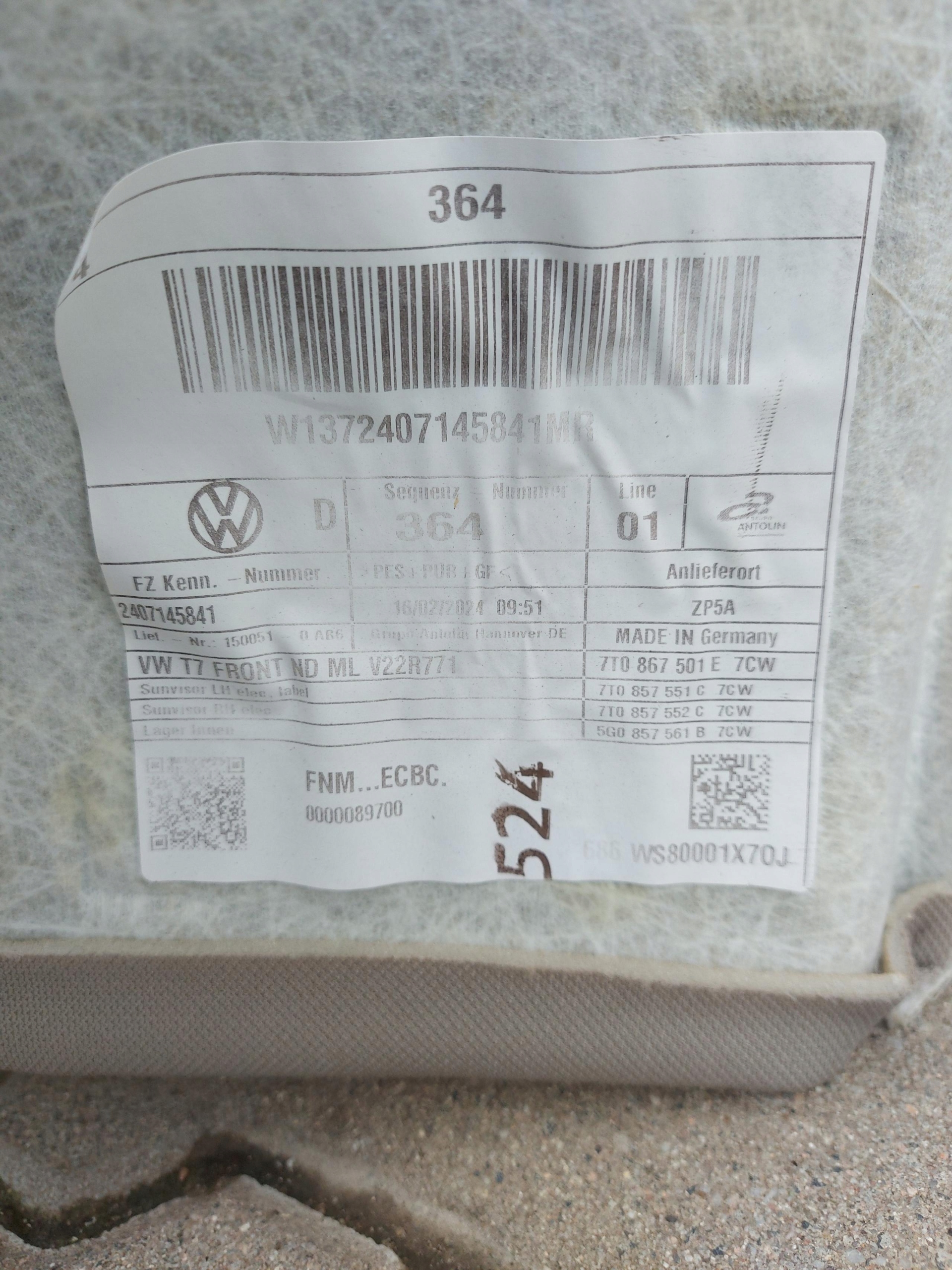 ZAPZA — уникальный маркетплейс запчастей автотоваров и услуг для физ и юр лиц. В каталоге маркетплейса ZAPZA представлены новые, б/у и восстановленные автозапчасти, для всех типов транспорта. Автодеталь vw MULTIVAN 7T0 T7 потолок Кузова 7T0867501E после демонтажа прошла проверку и готова к дальнейшей эксплуатации.
