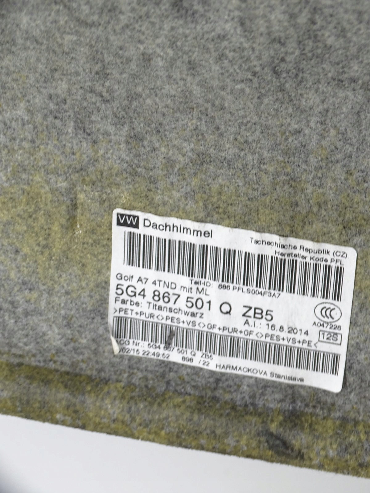 потолок vw GOLF VII HB GTD r GTI 5 Двери 5G4867501Q черный