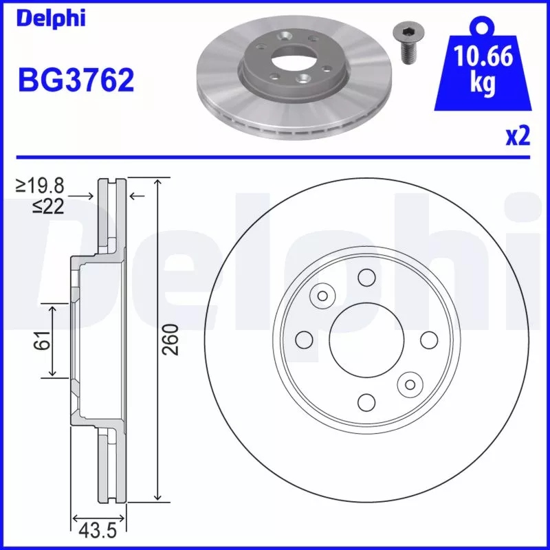 2× Delphi BG3762 тормозной диск LP3551 комплект датчик износа тормозных колодок, тормоз
