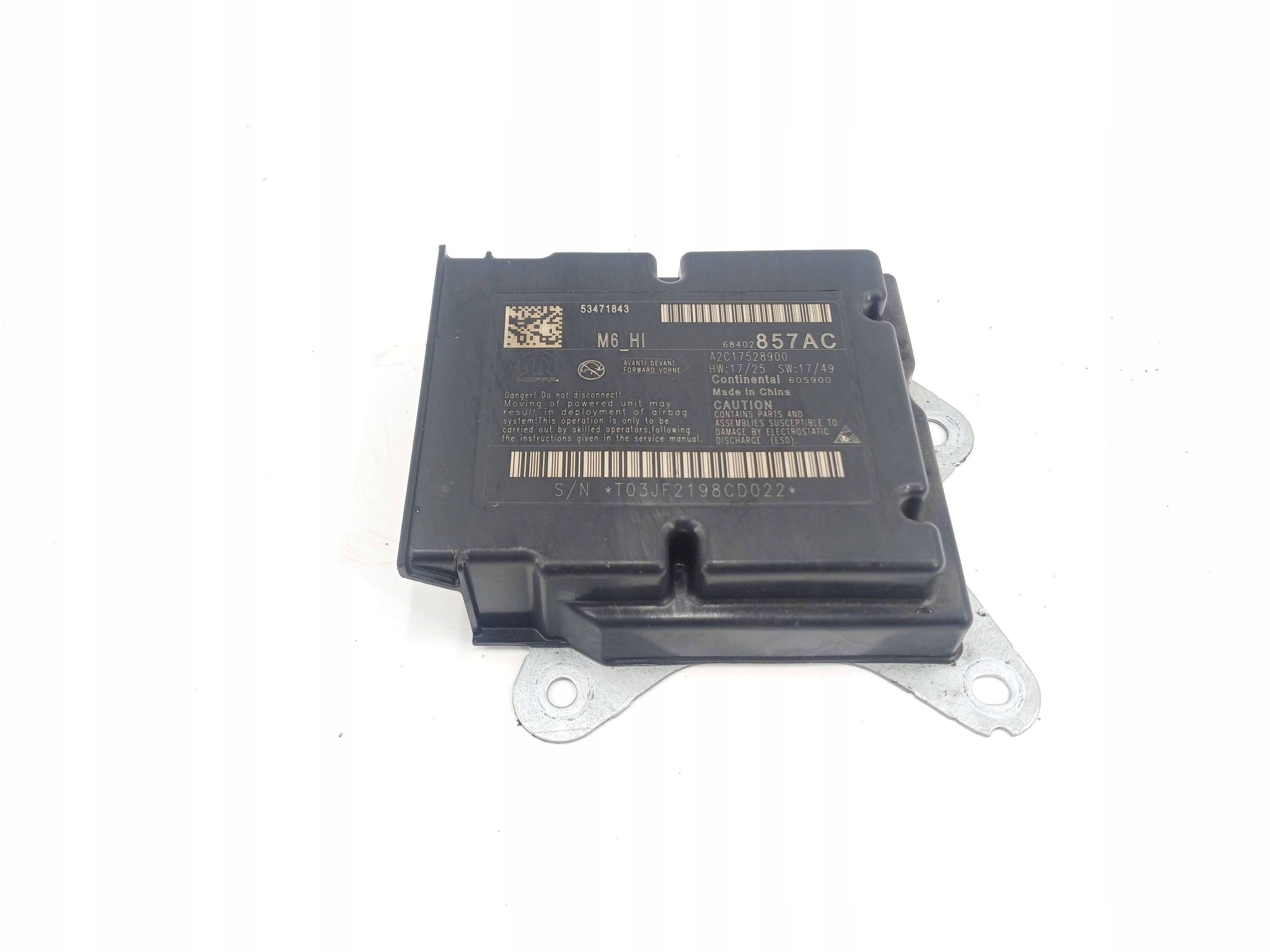 ZAPZA — уникальный маркетплейс запчастей автотоваров и услуг для физ и юр лиц. В каталоге маркетплейса ZAPZA представлены новые, б/у и восстановленные автозапчасти, для всех типов транспорта. Автодеталь 2019 Compass БЛОК УПРАВЛЕНИЯ подушки безопасности 68240950AA после демонтажа прошла проверку и готова к дальнейшей эксплуатации.