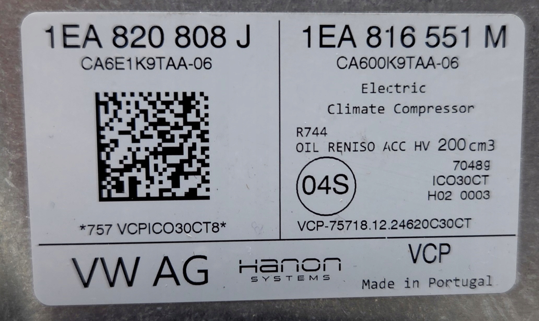 Компрессор кондиционера vw ID7 1EA816551M 1EA820808J