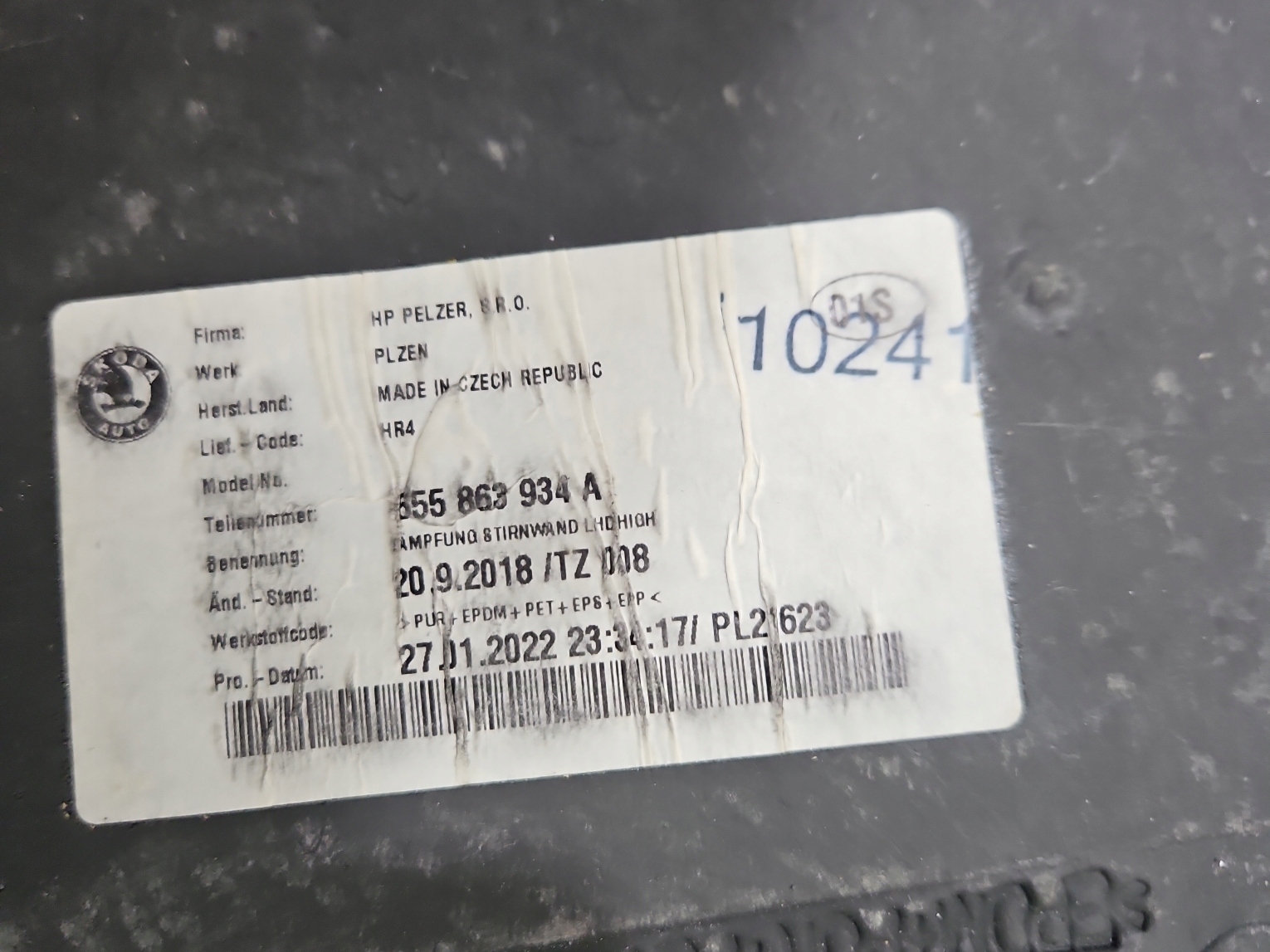 Изоляция перегородка перег SKODA SCALA 2019-