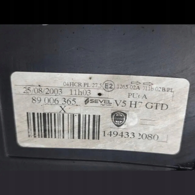 2003 lancia PHEDRA фара 89006365
