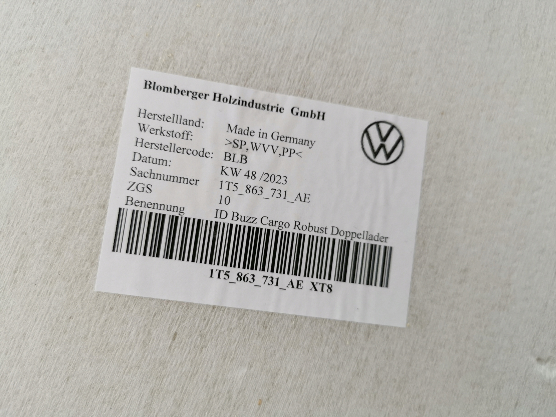 ковер vw ID BUZZ 1T5863731AE оригинальная